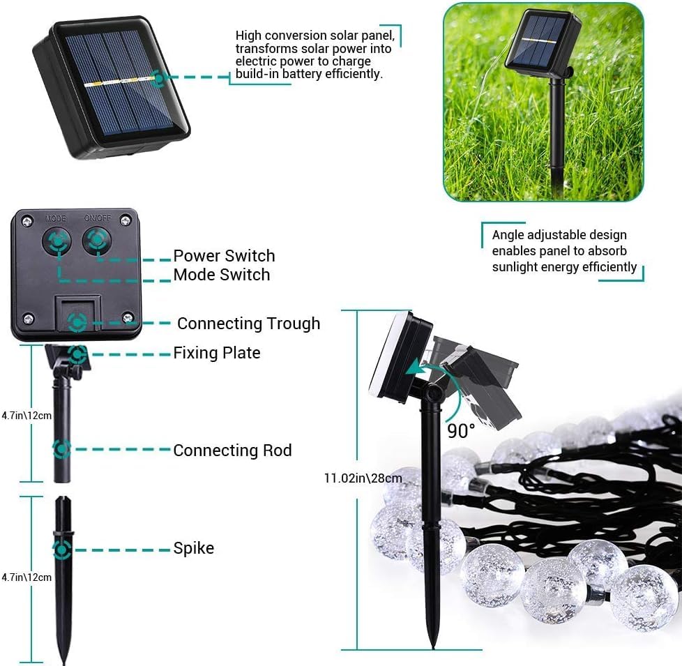 Solar String Lights, Small Crystal Ball Light,Outdoor String Light 60 Led 40Ft 8 Lighting Modes Waterproof Solar Powered Patio S