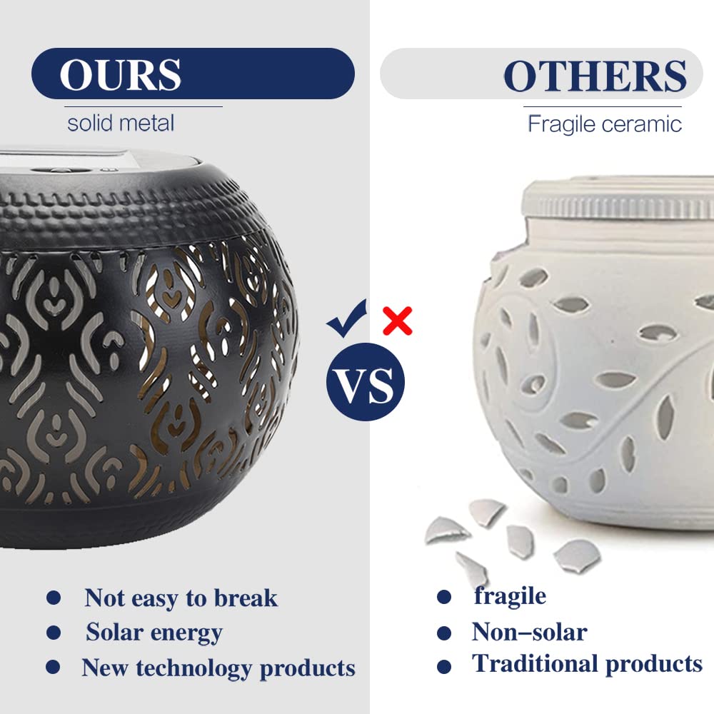 Q: What kind of ambiance does the solar lamp create?A: The solar lamp produces a warm yellow light with a flickering flame effect, creating a gentle and romantic atmosphere that’s perfect for relaxing evenings on your patio or garden.