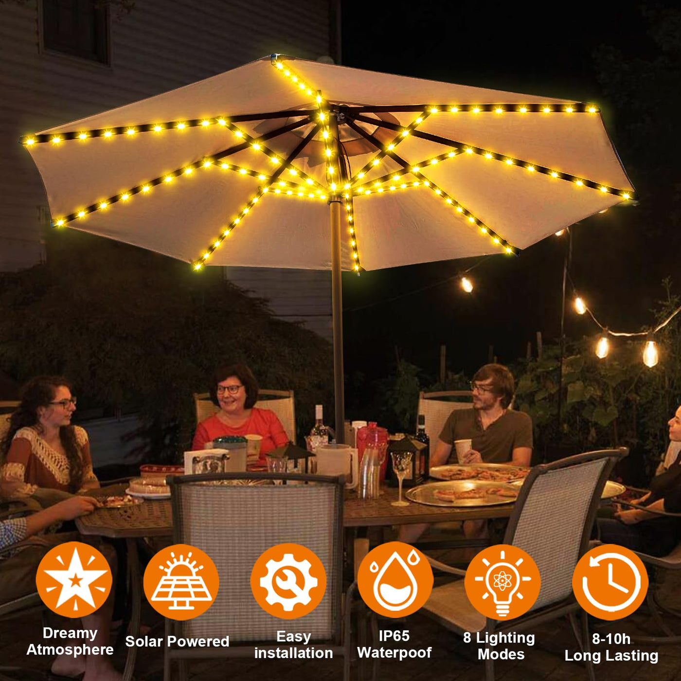 Q: Can I use these lights with any patio umbrella?A: Yes, the Solar Umbrella Lights are designed to clip onto most patio umbrellas, making them a versatile choice for various outdoor settings.