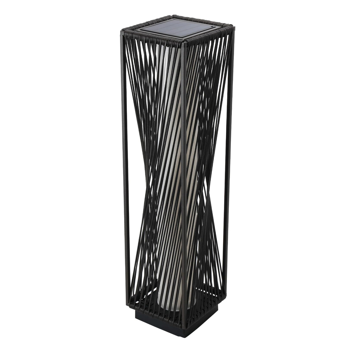 - **MODERN DESIGN:** Featuring a round corded resin wicker construction with a captivating twist detail, this lamp enhances your decor while providing a warm, inviting ambiance. The central column diffuses light beautifully, creating a magical atmosphere in any outdoor setting.