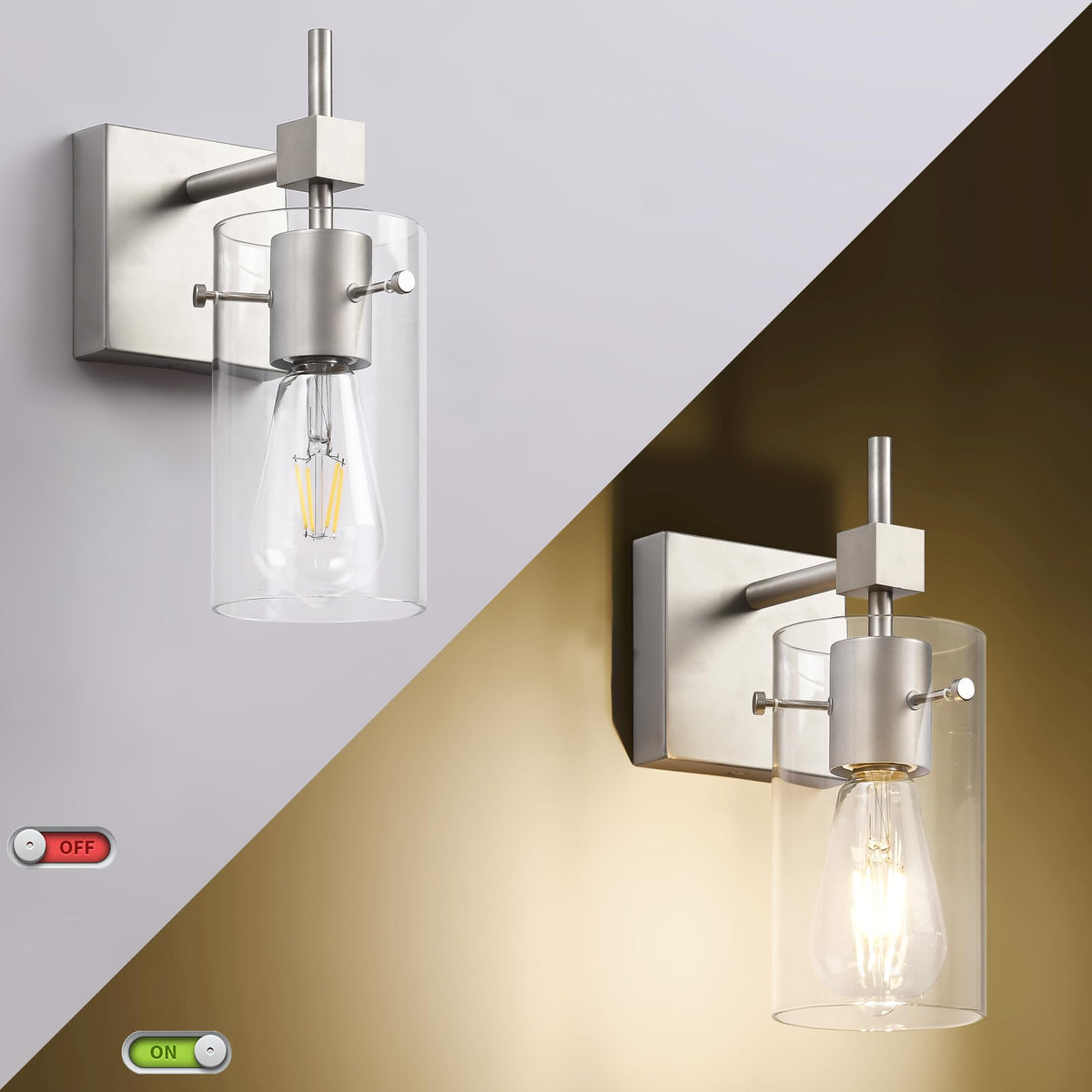 Solfart 1 Light Vintage Vanity Light Brushed Nickel Bathroom Light Fixture Over Mirror For Bath Glass Shade Wall Light Modern Li