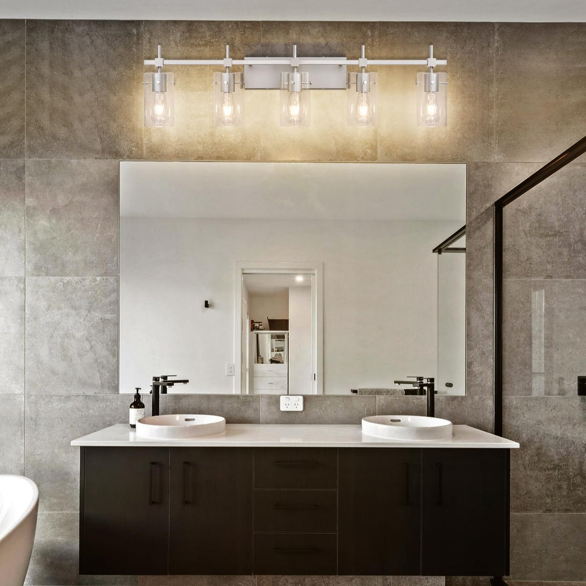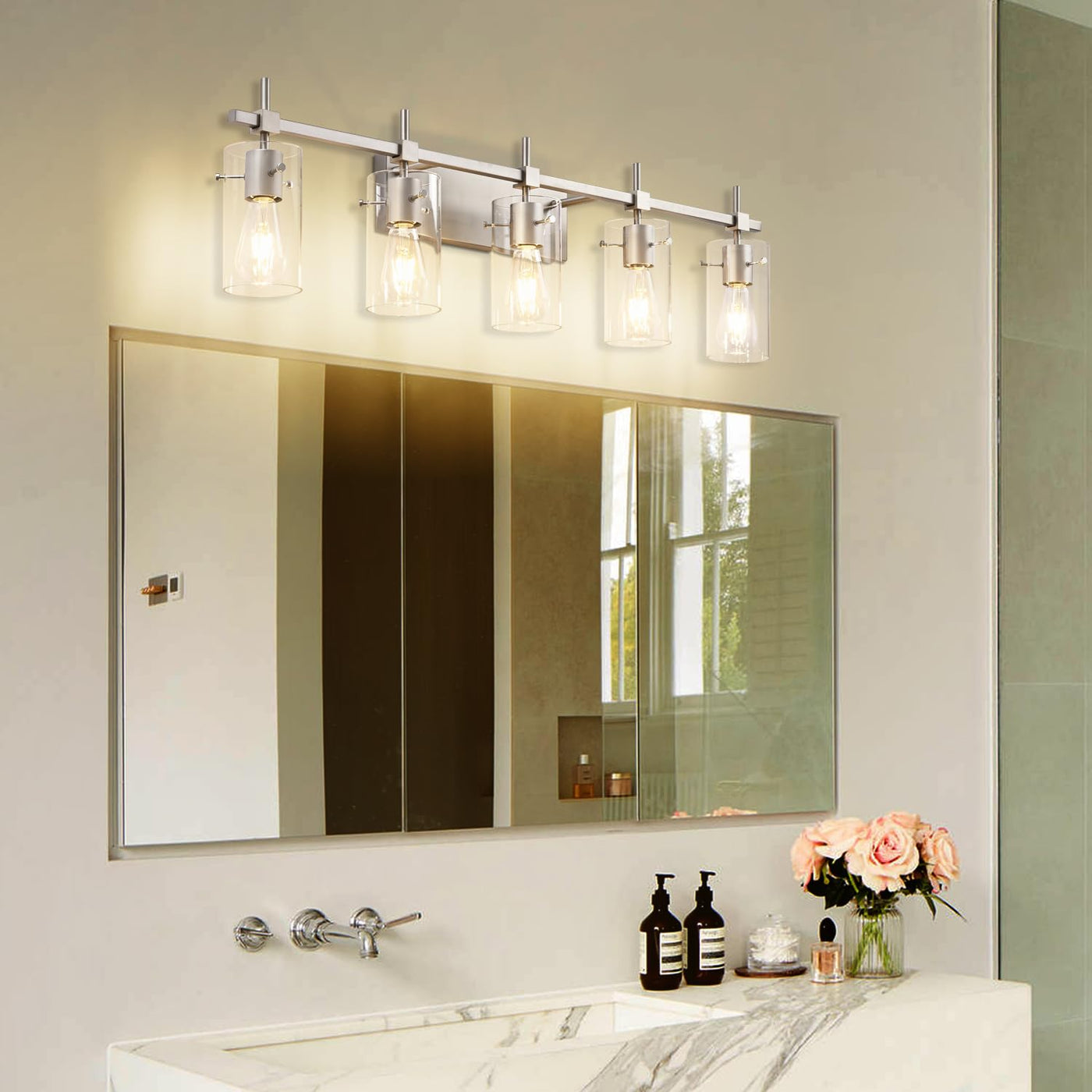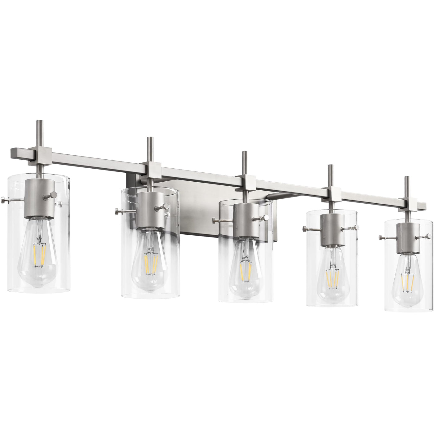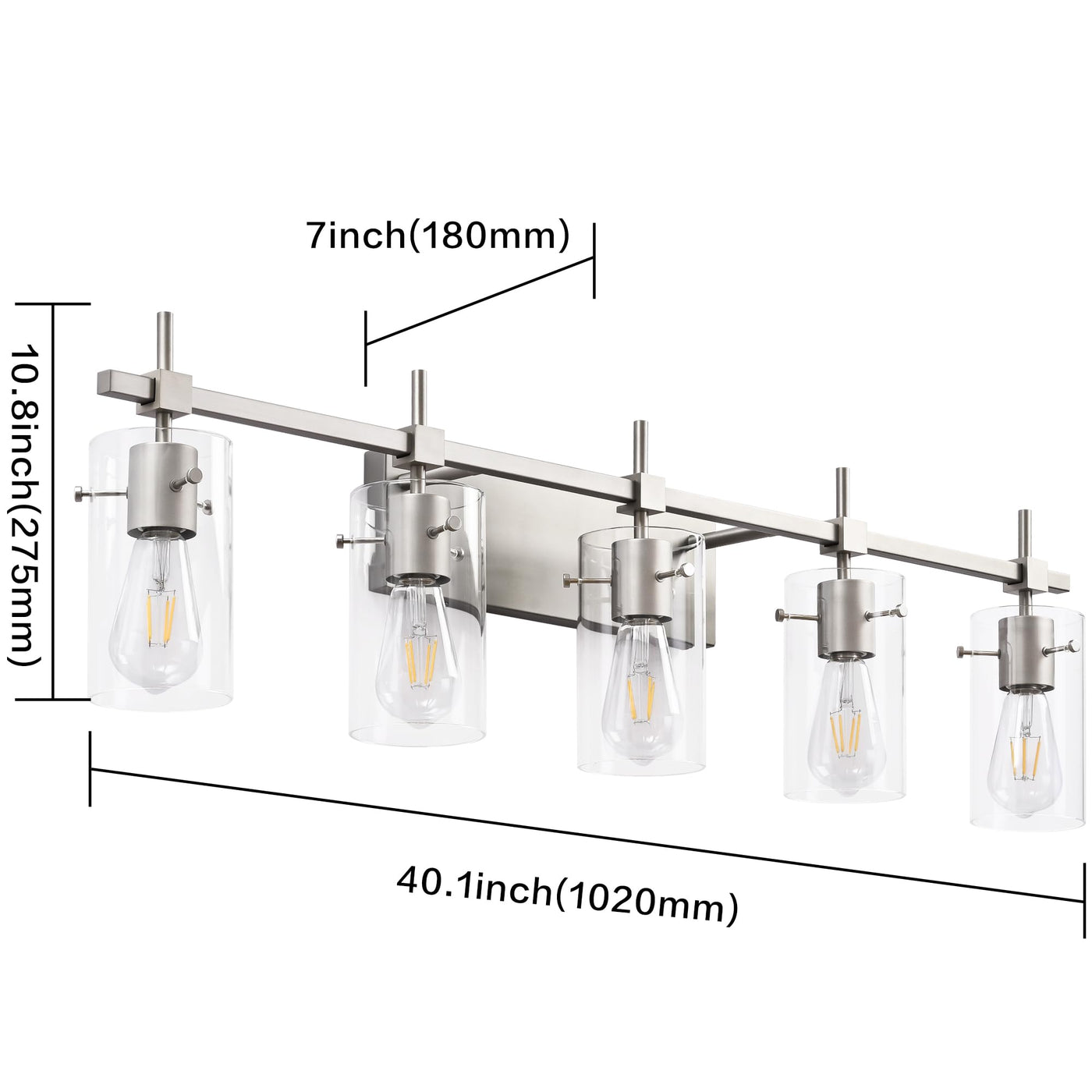Solfart 40.1 Inch 5 Light Bathroom Vanity Light Fixtures Bathroom Light Fixture Over Mirror Brushed Nickel Wall Lights With Glas