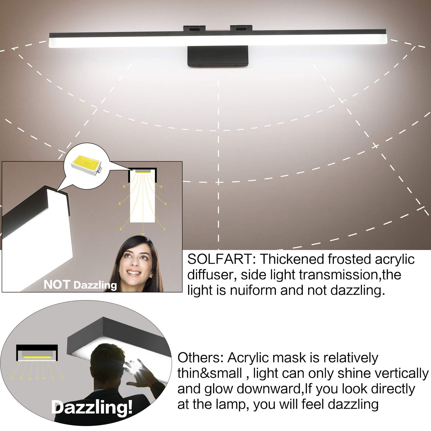 SOLFART Modern Dimmable LED Vanity Light 40 inch Black Aluminum Frosted Acrylic for Bathroom Vanity Lighting Fixtures White Ligh