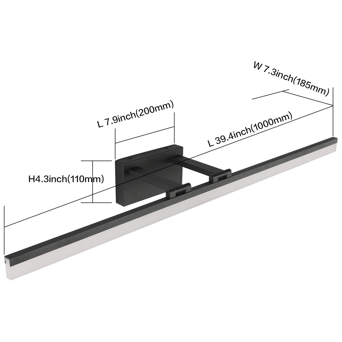 Special discount For New item in limited time ONLY,Please catch the promotion Brand: SOLFART LIgHTINg Specification: 1 Overall Size: Length 40 inch*Height 43 inch (L1000*H110 mm) 2 Power: 24 W 3Input: Ac 85-265V ,5060Hz 4Output: 36-63V, 240mA A5% 5Lumens: 1920 lumen 6SMD: 14 PcS 2835SMD7Light color: White Light 8Material: Power coated Matt Black Frame with Black fixtures + frosted white Solid Hard Acrylic housing 9Light source: LED-Included the light Used high quality Samsung 2835 LED chip 10Easy to install : a transformer inside included the wall box and you can directly connect to an existing 110V or 220V cable Not need to assembly the lamp body, just connect the wire and fix the base to the wall Suitable for US junction box Feature: Specific used for bathroom : IP 40 ( Water splash proof) ENERgY SAVINg&LONg LIFE:24W 50000 hrs life, low power consumptionchrome Stainless steel body, durable and shining Package: 1 pcs complete wall light + 1 set of screw installation instruction included certified: cE , ROSH ,VED,cQc ,UL (without IR and UV radiation) WARRANTY : 2-year limited You are supported with professional and efficient after-sales service guaranteed Why choose SOLFART Lighting : 16 years history construction area 60,000 Advanced equipment, perfect system Produced and designed by our own 25 designers, Staff over 400 Annual sales over 015 billion dollar