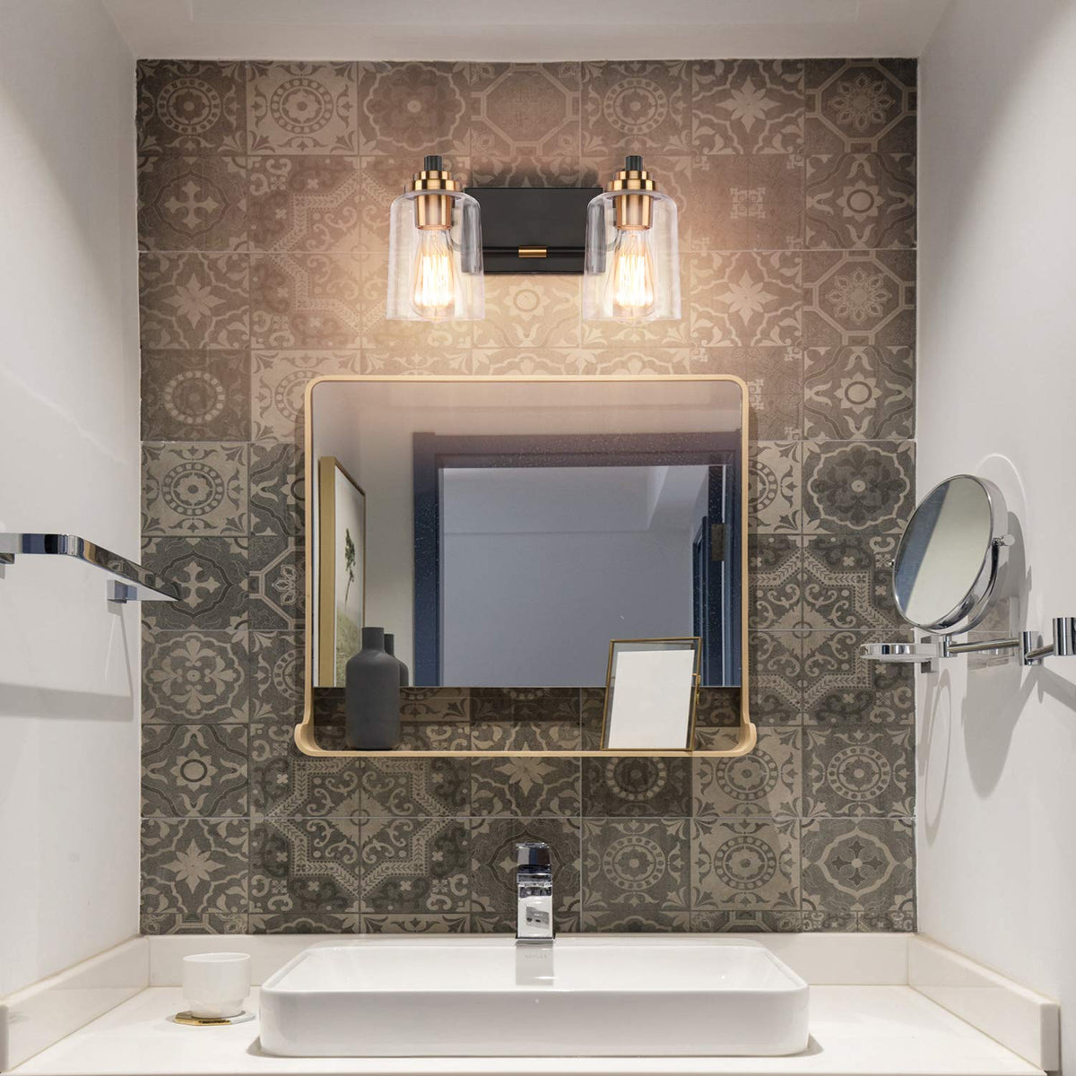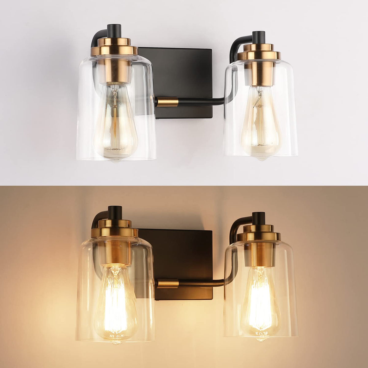 Solfart Vintage Bathroom Vanity Light Black Bathroom Light Fixtures Over Mirror Metal With Clear Glass Brass Fixtures Wall Mount