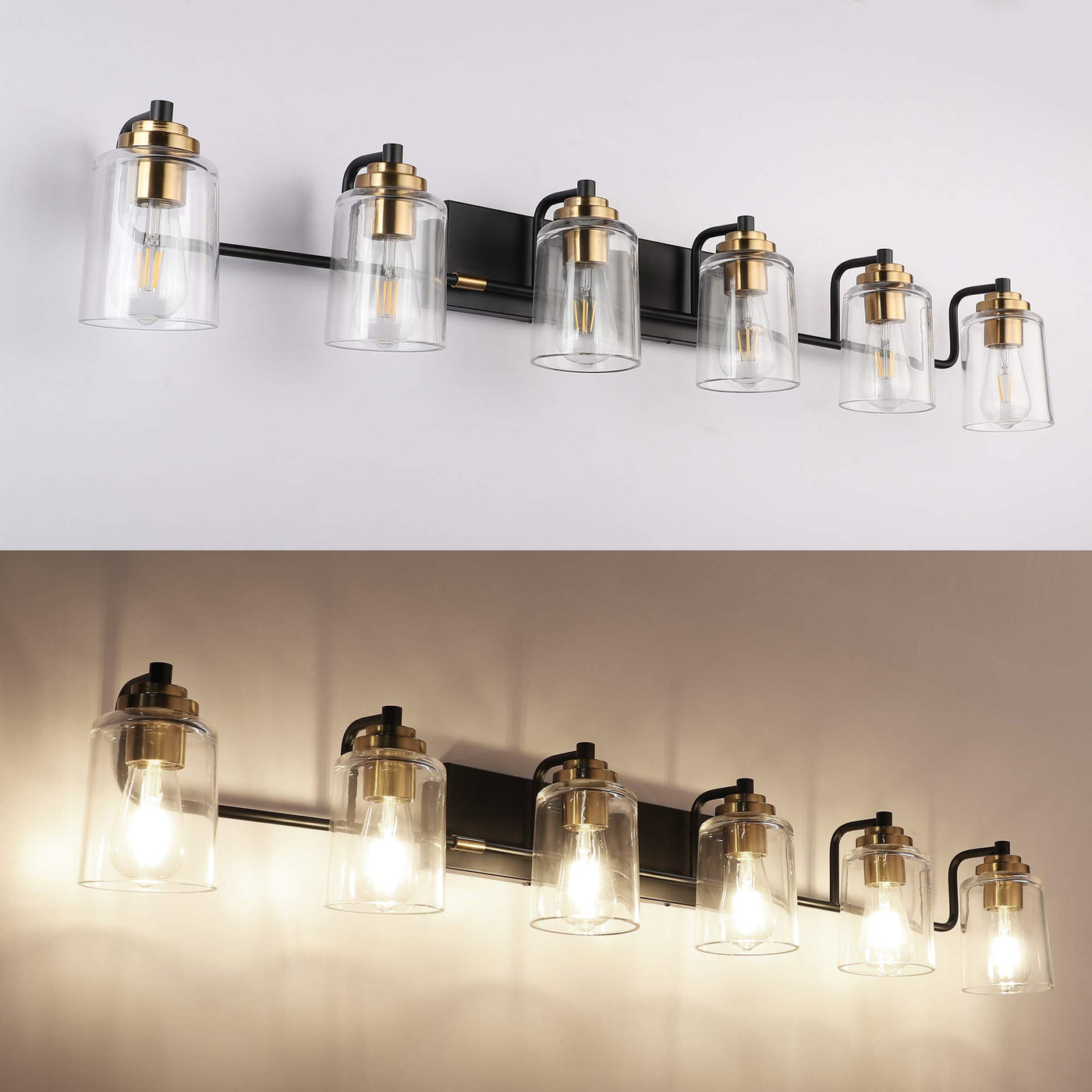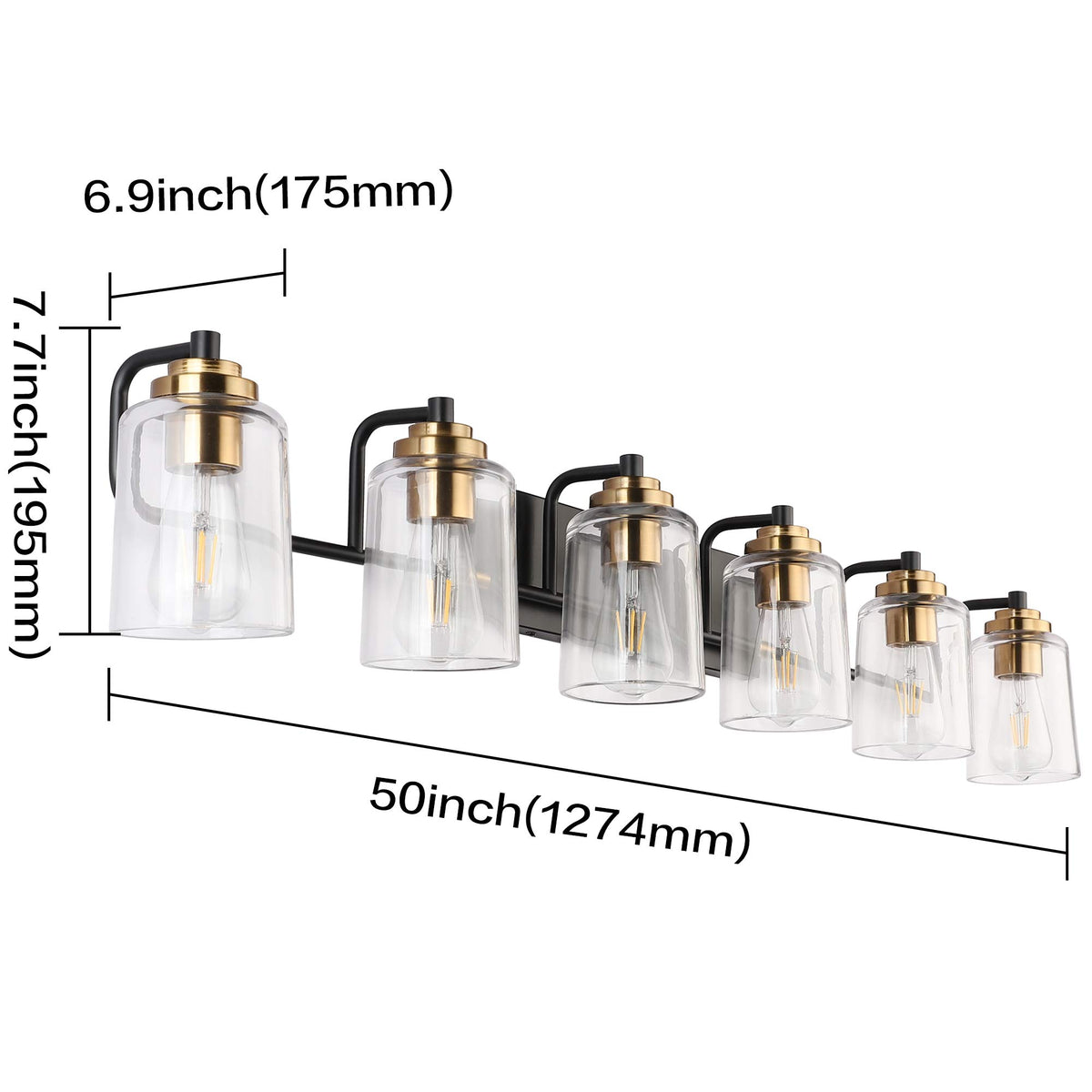 SOLFART Vintage Wall Vanity Lights for Bathroom Vanity Light 40 inch Black Globe Light Metal with Clear Glass Brass Fixtures Wal