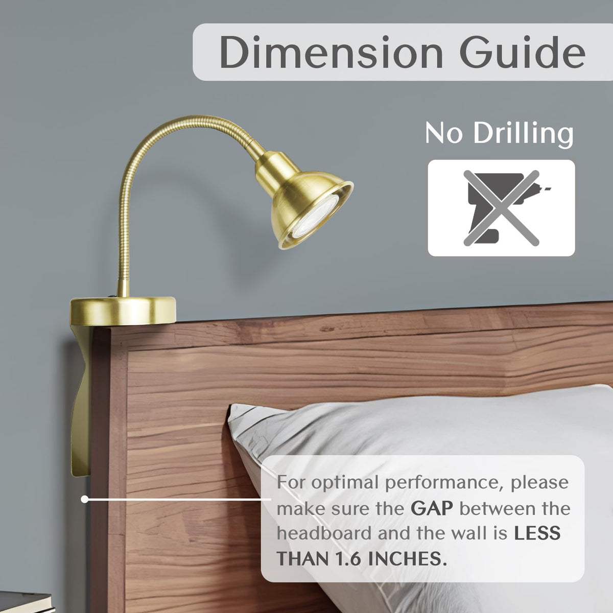 Solfres Innovative Design Headboard Reading Light. No Drilling Golden Book Light For Bedtime Reading. Dimmable Led Book Reading Lamp With Bulb. Movable & Flexible, Gold