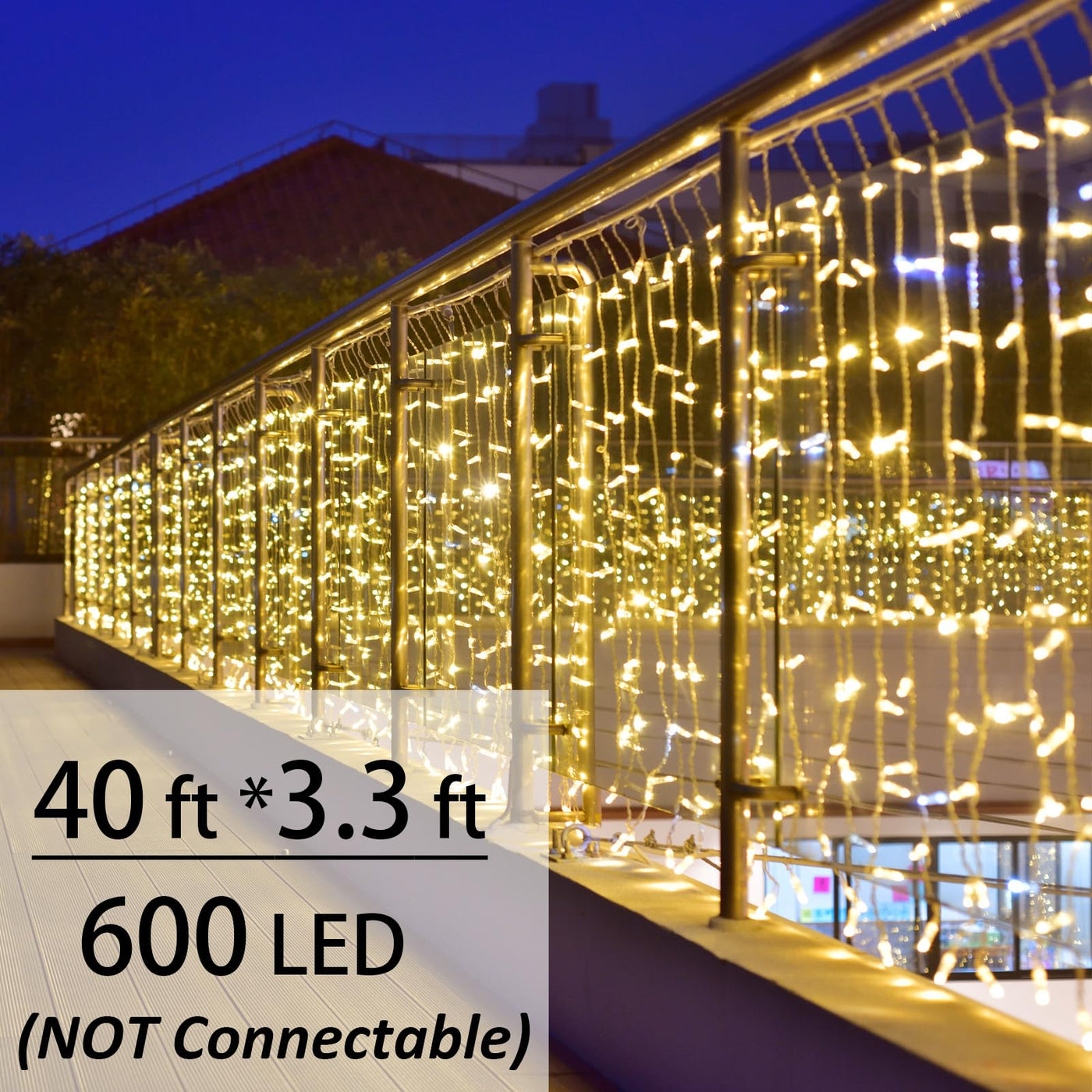 Solhice Led Curtain Lights Outside 40Ft X 3Ft For Backyard, 600 Led Plug In Hanging Fence String Lights Outdoor Waterproof For B