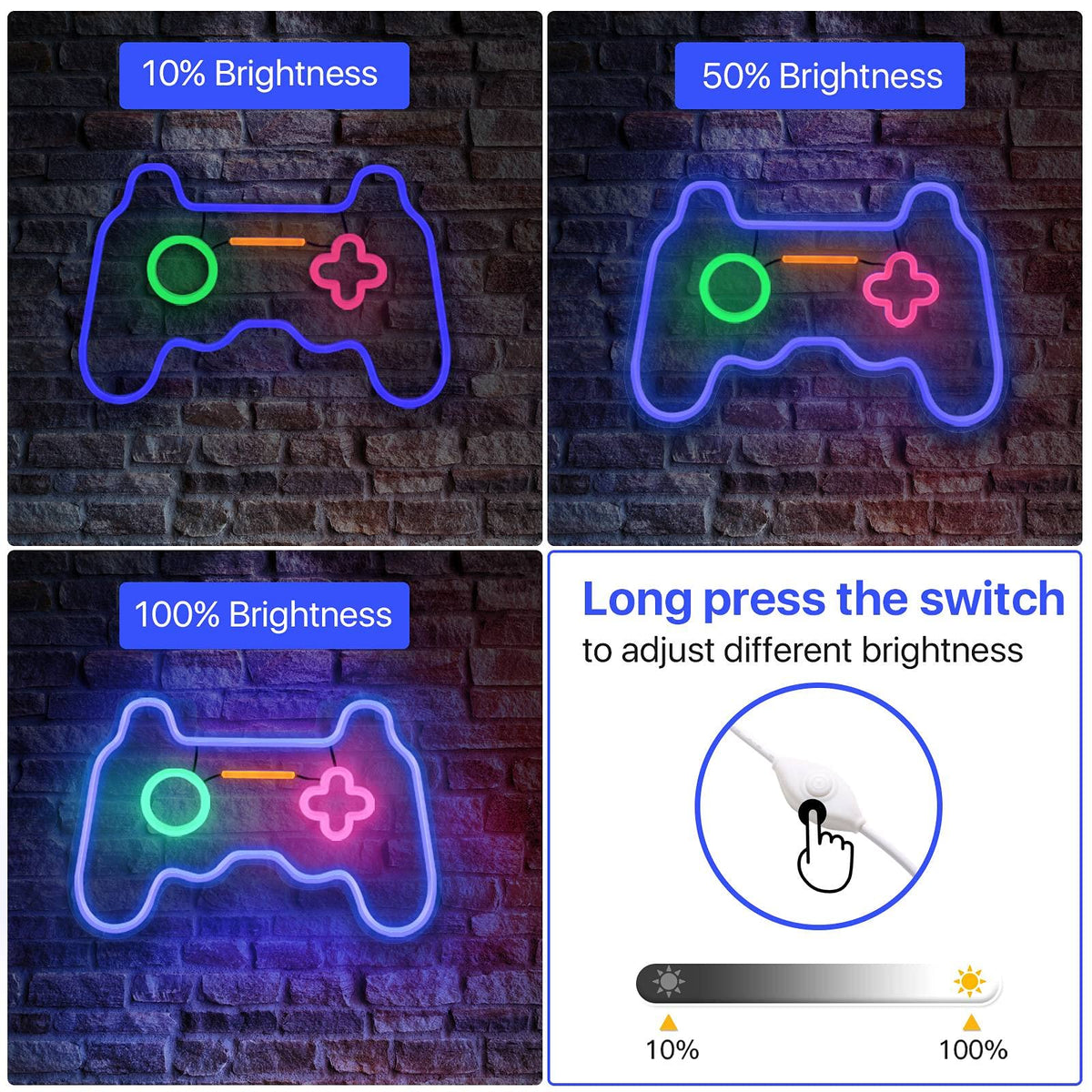 Solidee Led Dimmable Neon Signs Wall Decorations For Living Room|Bedroom Gamepad Controller Shape Neon Sign Lights Game Room Dec