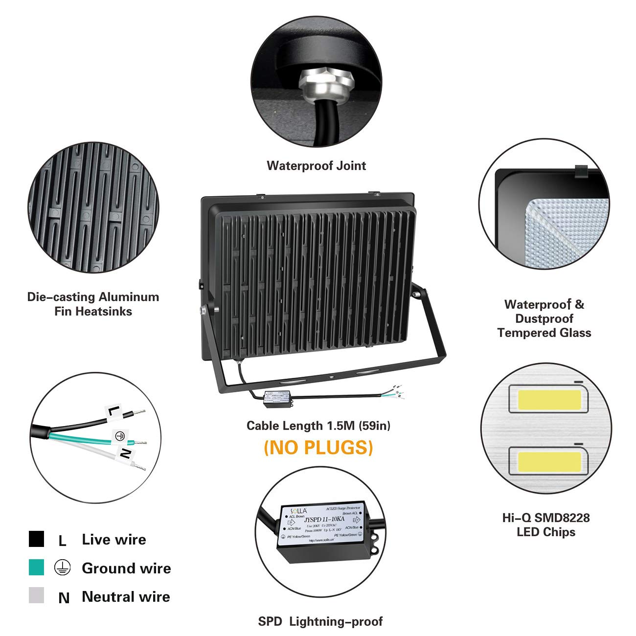 - **Long Lifespan & Efficient Heat Dissipation**: Engineered with wider LED chip arrays and a fin-type heat sink, this flood light excels in heat management, boasting a lifespan of over 50,000 hours for long-lasting performance.