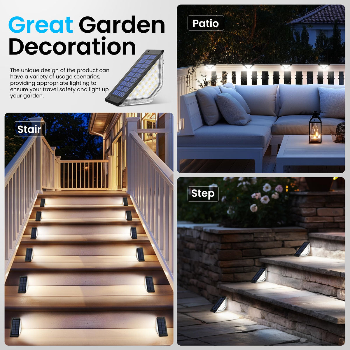 Q: How do the solar step lights activate?A: The solar fence lights automatically turn on at night and off during the day, ensuring convenience and energy efficiency without manual operation.