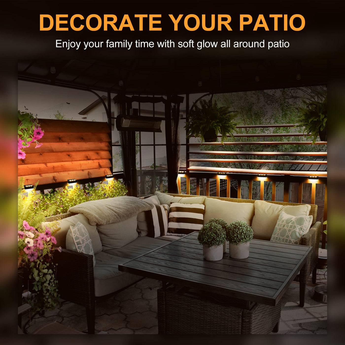 Q: What areas are best suited for these solar lights?A: These solar lights are perfect for various outdoor areas including fences, decks, balconies, steps, gardens, and walkways, enhancing ambiance and safety.