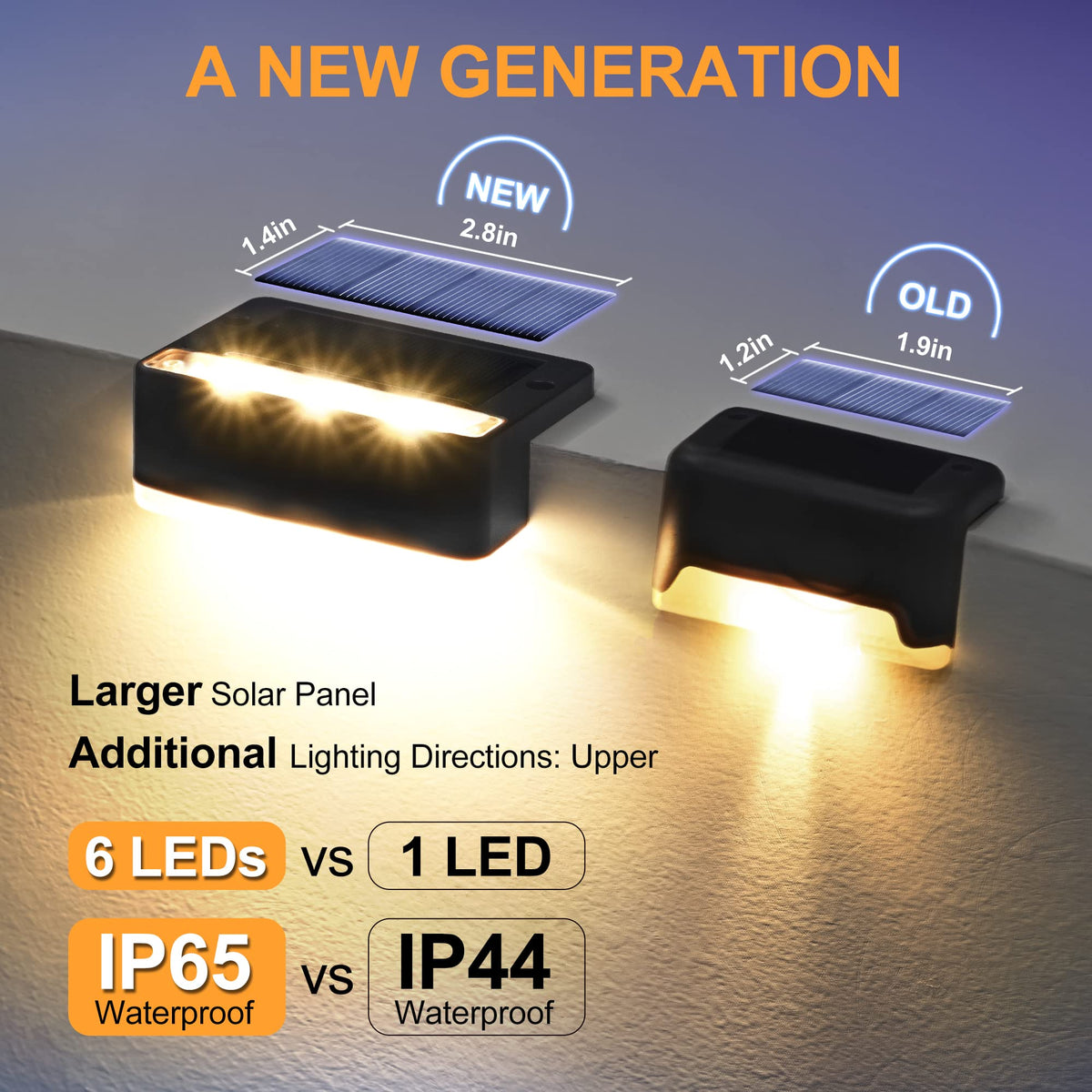 Solpex Solar Fence Lights, 6 Leds Solar Lights Outdoor Waterproof Solar Powered For Deck, Stair, Front Porch, Balcony, Walkway,