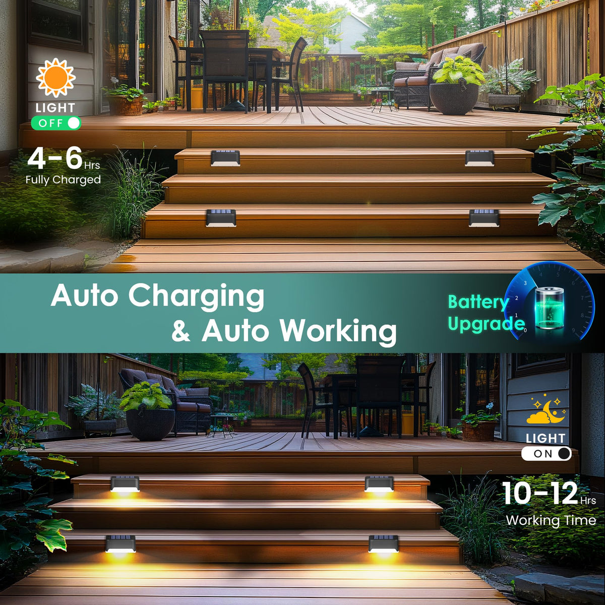 Solpex Solar Fence Lights Outdoor, Solar Step Lights Waterproof Led Deck Lights For Stair, Balcony, Railing, Front Porch, Yard,