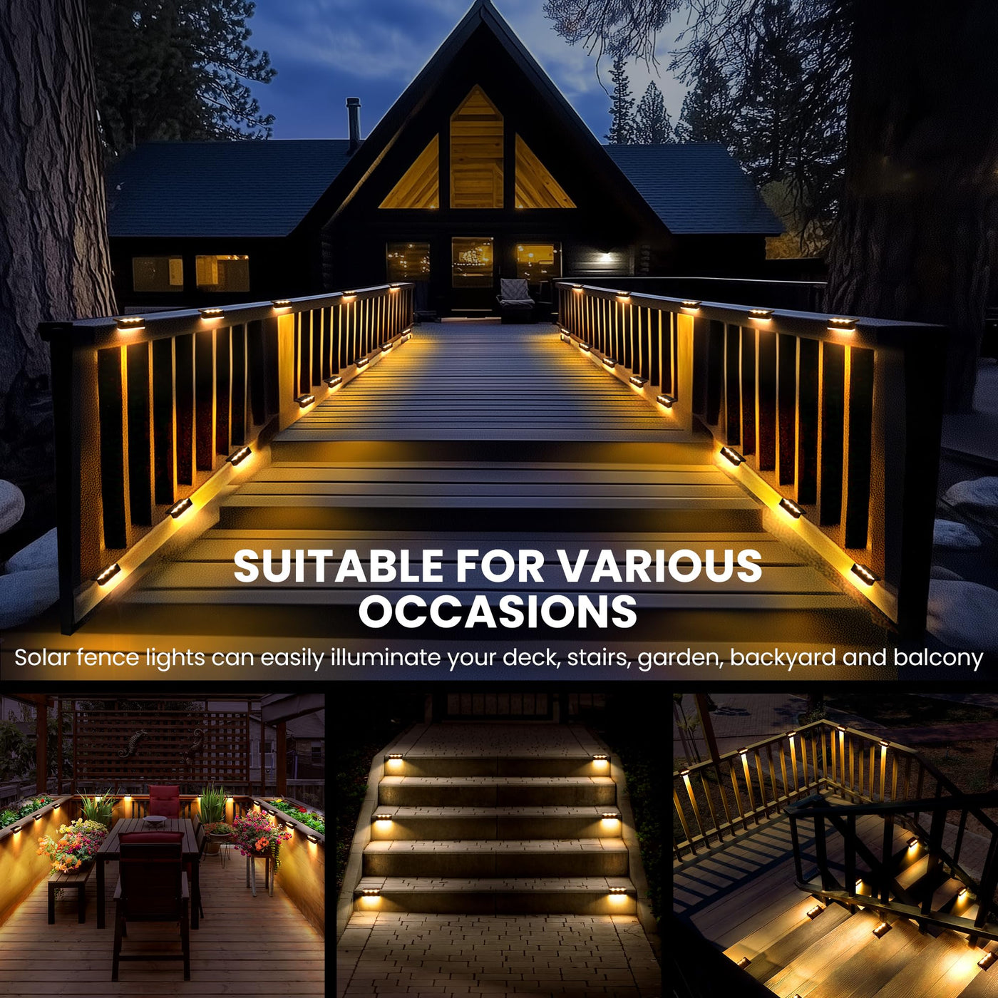 Solpex Solar Fence Lights, Solar Deck Lights Outdoor Waterproof Solar Powered For Step, Stair, Balcony,Front Porch,Garden, Walkw
