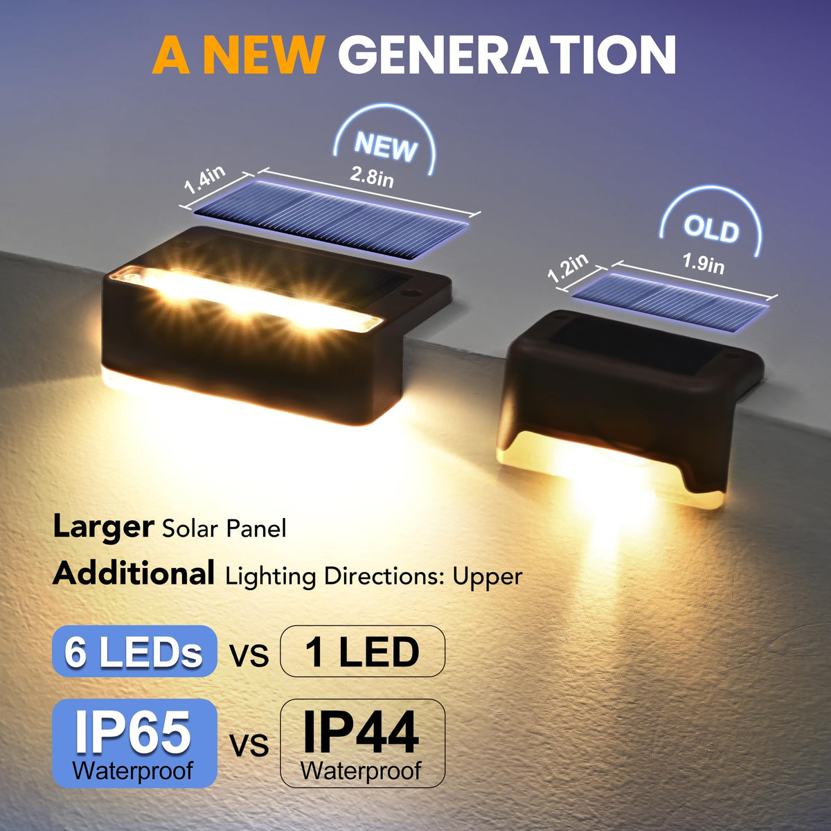 Solpex Solar Fence Lights, Solar Deck Lights Outdoor Waterproof Solar Powered For Step, Stair, Balcony,Front Porch,Garden, Walkway,Yard, Patio Decor, Ip65 Waterproof (16 Pack, Warm White) 6 Leds