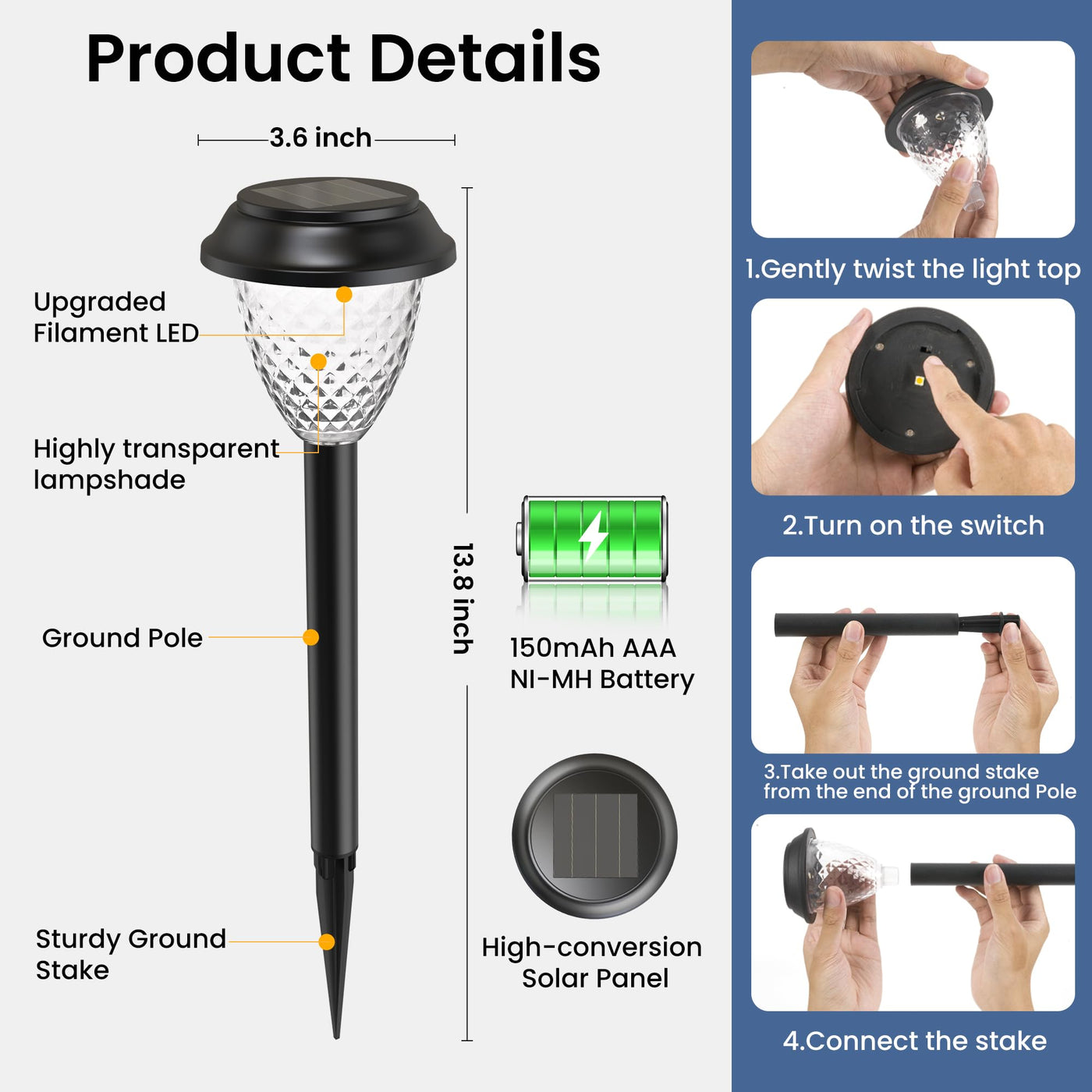 Solpex Solar Lights For Outside,12 Pack Solar Lights Outdoor Waterproof,Warm White Outdoor Solar Lights For Yard,Garden,Pathway,