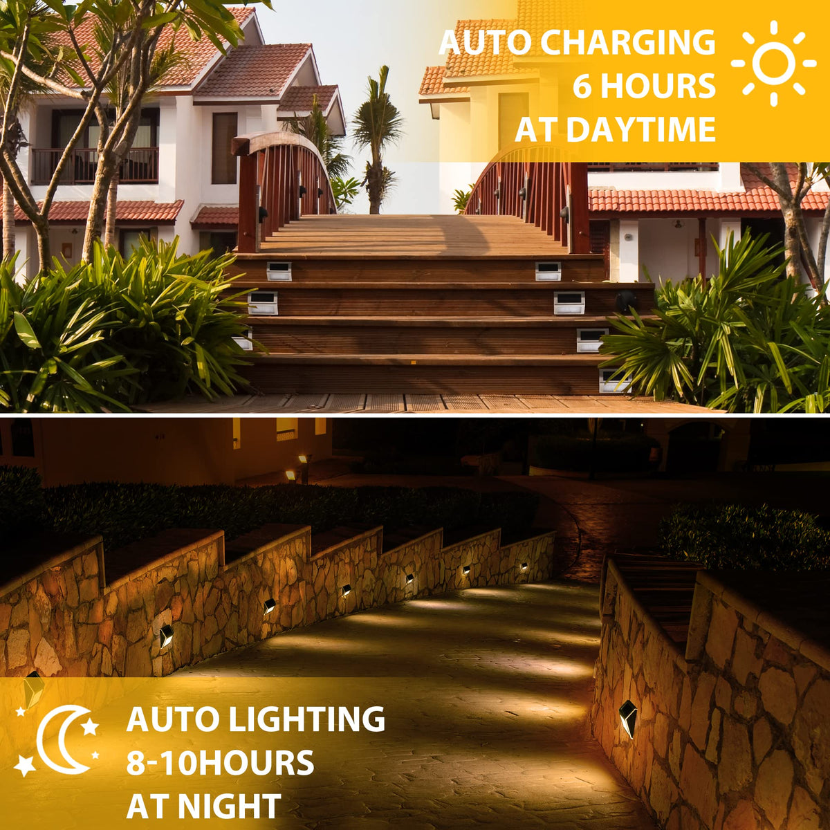 Solpex Solar Step Lights, 6 Pack Solar Stair Lights, Outdoor Fence Lighting, Solar Powered Deck Lights Waterproof 4 Leds For Stairway Patio Porch Pathway Walkway Garden (Warm White)