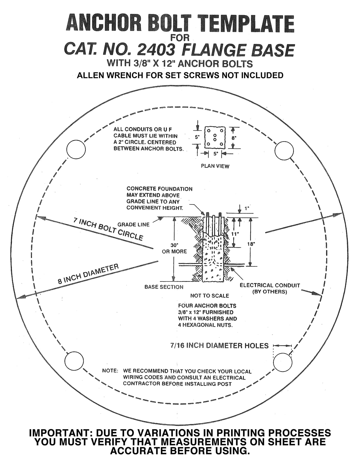 This Lamp Post flange base is made of cast aluminum and powder coated finish for durability and all mounting hardware is included (anchor bolts, template, set screws & allen wrench). This flange base is used for surface-mounting 3'' diameter posts up to 8' height. This base will accommodate a post with a maximum outer diameter of 3.03'' and a minimum outer diameter of 2.95''. Post is secured with three included set screws. FOR SURFACE MOUNT POSTS ONLY, NOT COMPATIBLE WITH DIRECT BURIAL POSTS