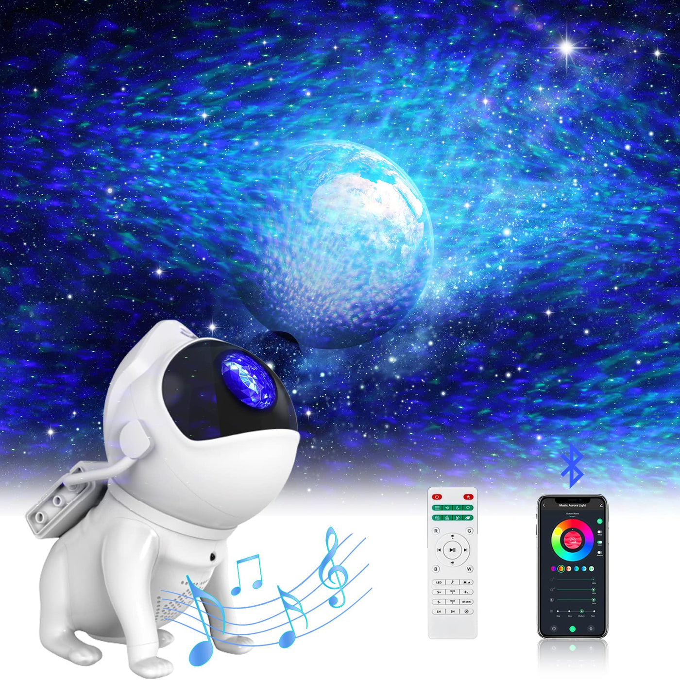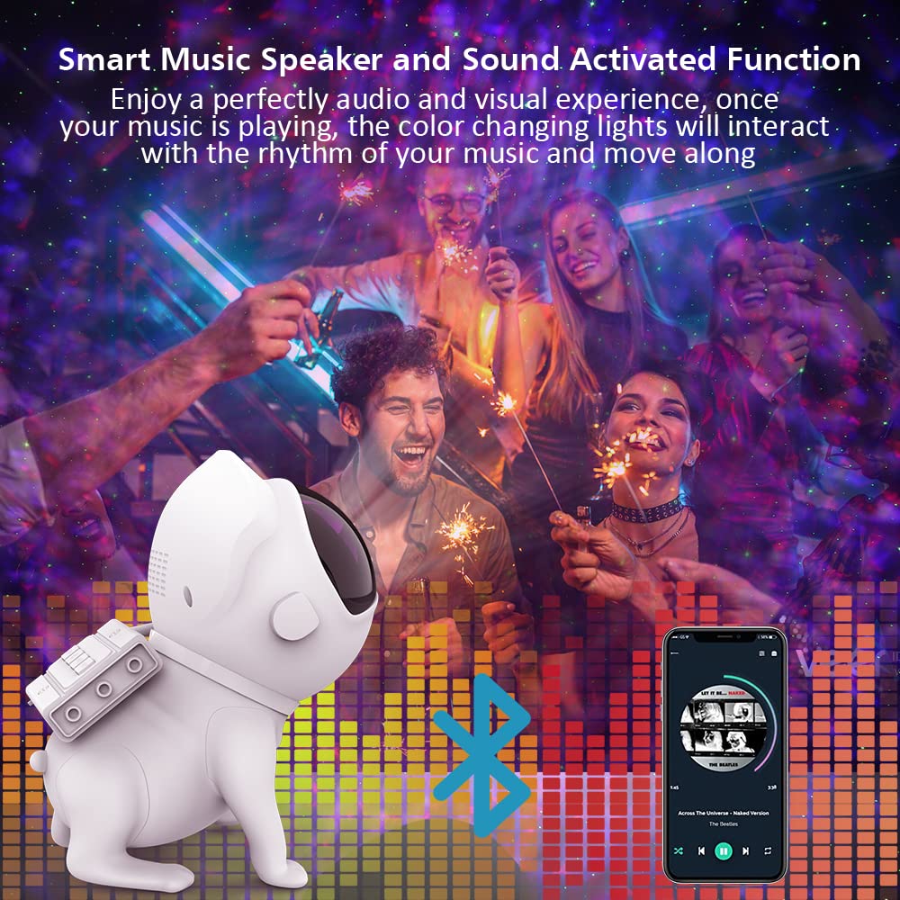 Somktn Space Dog Astronaut Star Projector - 21 Color Modes, Bluetooth Speaker, White Noise - Ocean Wave Night Light Projector Fo