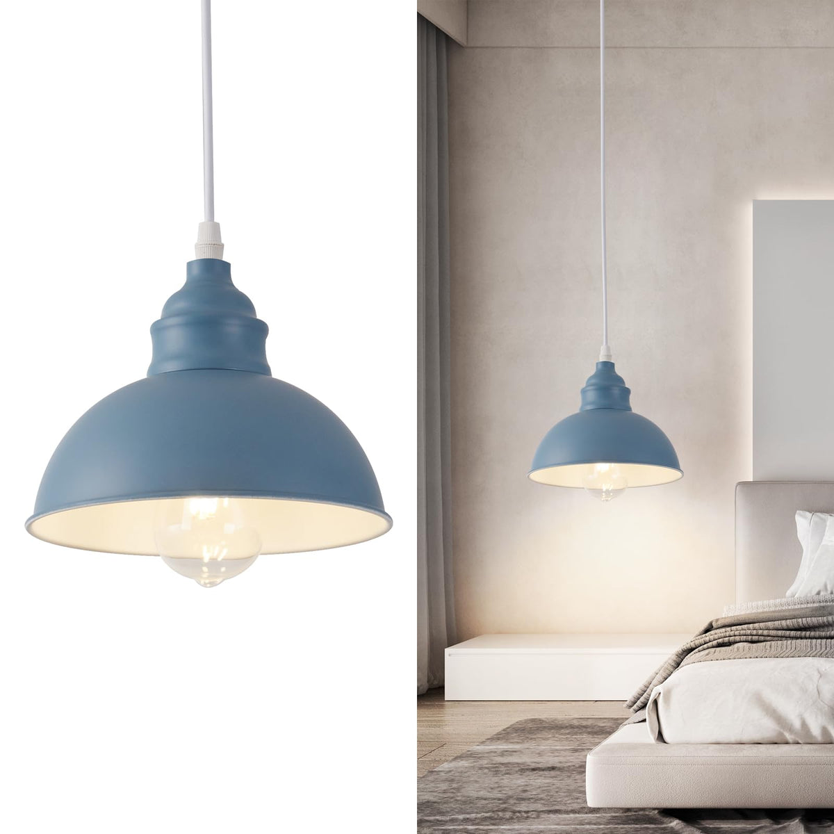 SoodMi Plug-in Pendant Light, Industrial Metal Hanging Lamp with On/Off Switch, 15FT Cord, Blue, Model PDL-012