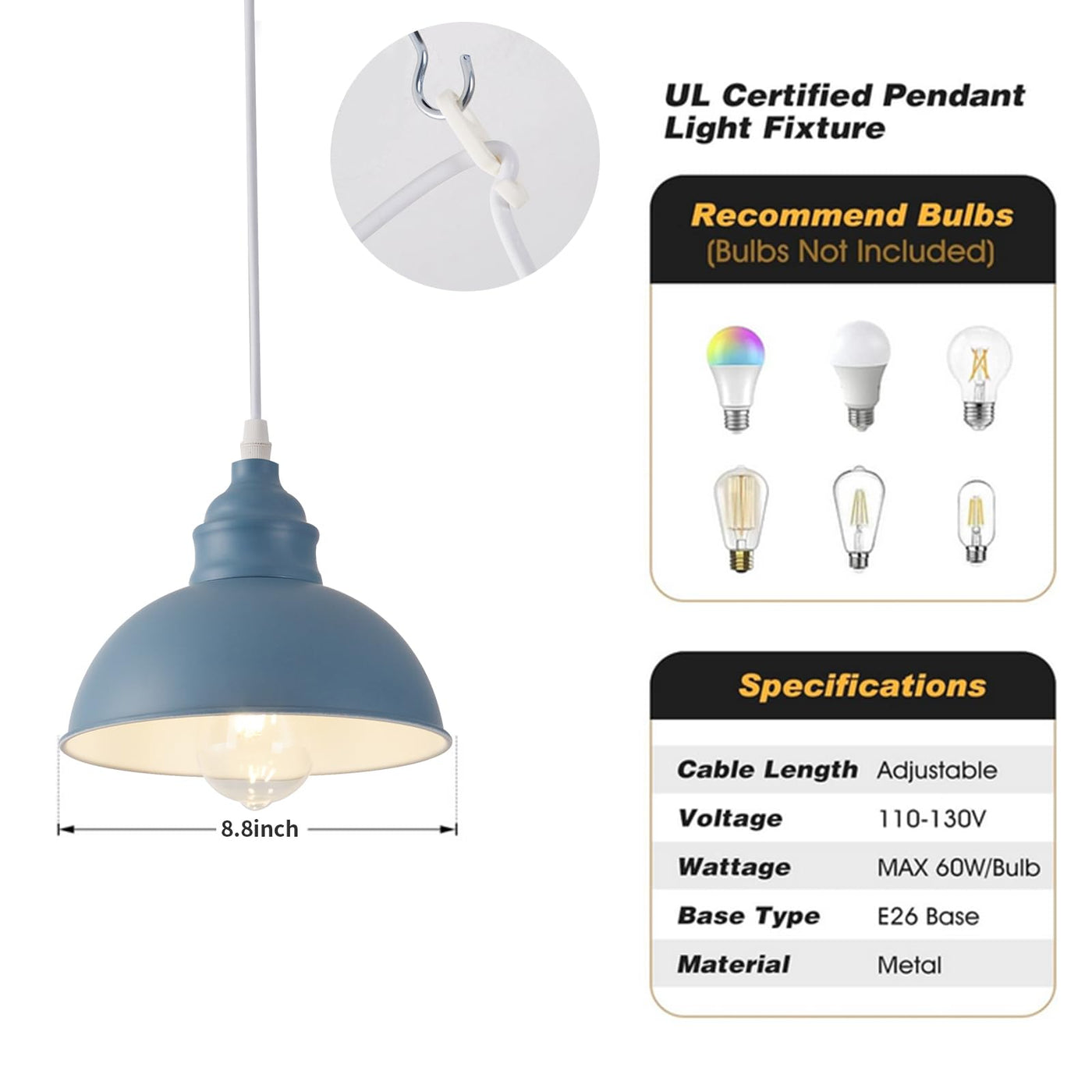 Easy Installation: Simple setup with included cable fixtures; no hardwiring required. Adjust the hanging height effortlessly.
