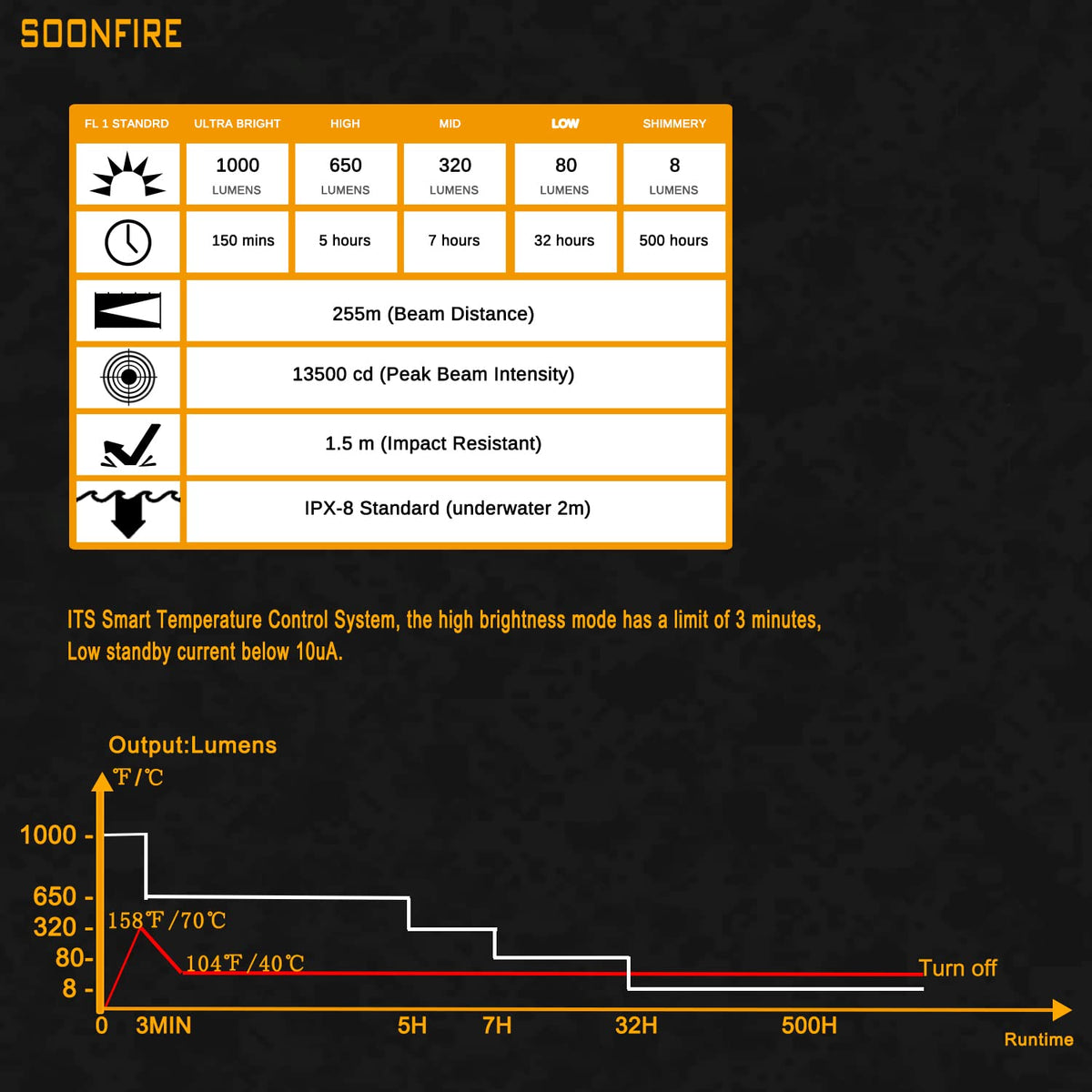 Soonfire 1000 Lumens White Led Flashlight, E Usb Rechargeable Waterproof Compact Edc Law Enforcement Flashlights (Camping, Emerg