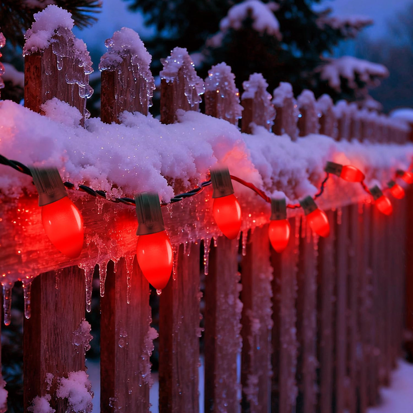 Sotopoo 25 Pack Red Led Light Bulbs C7 Replacement Bulbs - Led Glass Opaque Red Bulbs For Christmas Tree Garland Decor Christmas Lights Replacement Bulbs For Home Yard Porch Stair E12 Base 0.6W