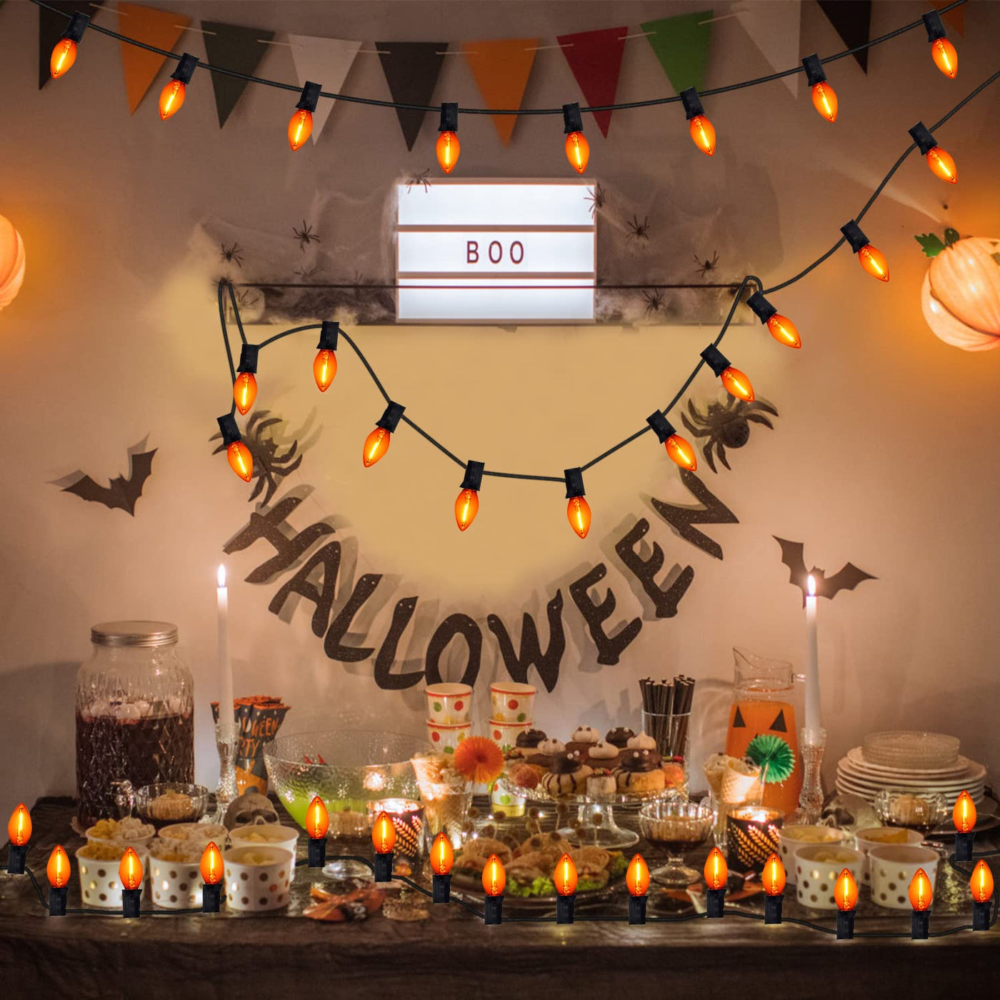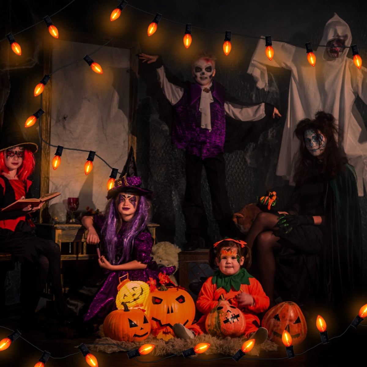 < p >Use SOTOPOO brilliant C7 Halloween orange lights - orange LED lights to add a charming and happy touch to your Halloween decorations outdoor indoor!< /P > < p >With a length of 25 feet and 25 count beautiful LED orange light bulbs, these Halloween LED lights are perfect for adding a festive and lovable touch to any space. The orange LED lights casts a warm and delightful glow that will set the mood for Halloween. Whether you hang them on your bedroom, living room, windows, curtain, stair, fence, doors, wall or use them as a backdrop for party, bar, weeding or other occasions, these warm orange string lights are sure to bring joy.< /P > < p >We understand the importance of convenience and durability, which is why our LED orange Halloween lights are easy to use and built to last. The plug-in design allows for hassle-free setup, and can end to end connection to cover large areas, and more, Halloween led lights outdoor is UL certification for your peace of mind, if you looking for LED outdoor string lights waterproof, do not miss these excellent Halloween lights outdoor, just enjoy the Halloween festivities without worrying about anything.< /P > < p >Looking for a beautiful and energy-efficient Halloween string lights as a gift for family or friend? Our warm LED Halloween lights make the perfect choice! Surprise your loved ones with these orange LED string lights and watch as their faces light up with joy. Whether they're decorating their homes or hosting a Halloween party, these orange LED Halloween lights will add an extra touch of happinedd to their Halloween indoor decorations, and the important, these LED orange string lights 0.6Watt, which is more than 90% energy efficient than incandescent bulbs, and will not too hot when using. Lifetime could up to 30,000 hours, energy efficient enough and durable absolutely.< /P > < p >Don't miss out on the opportunity to create a truly charming Halloween atmosphere. Order your warm and energy efficient Halloween orange l
