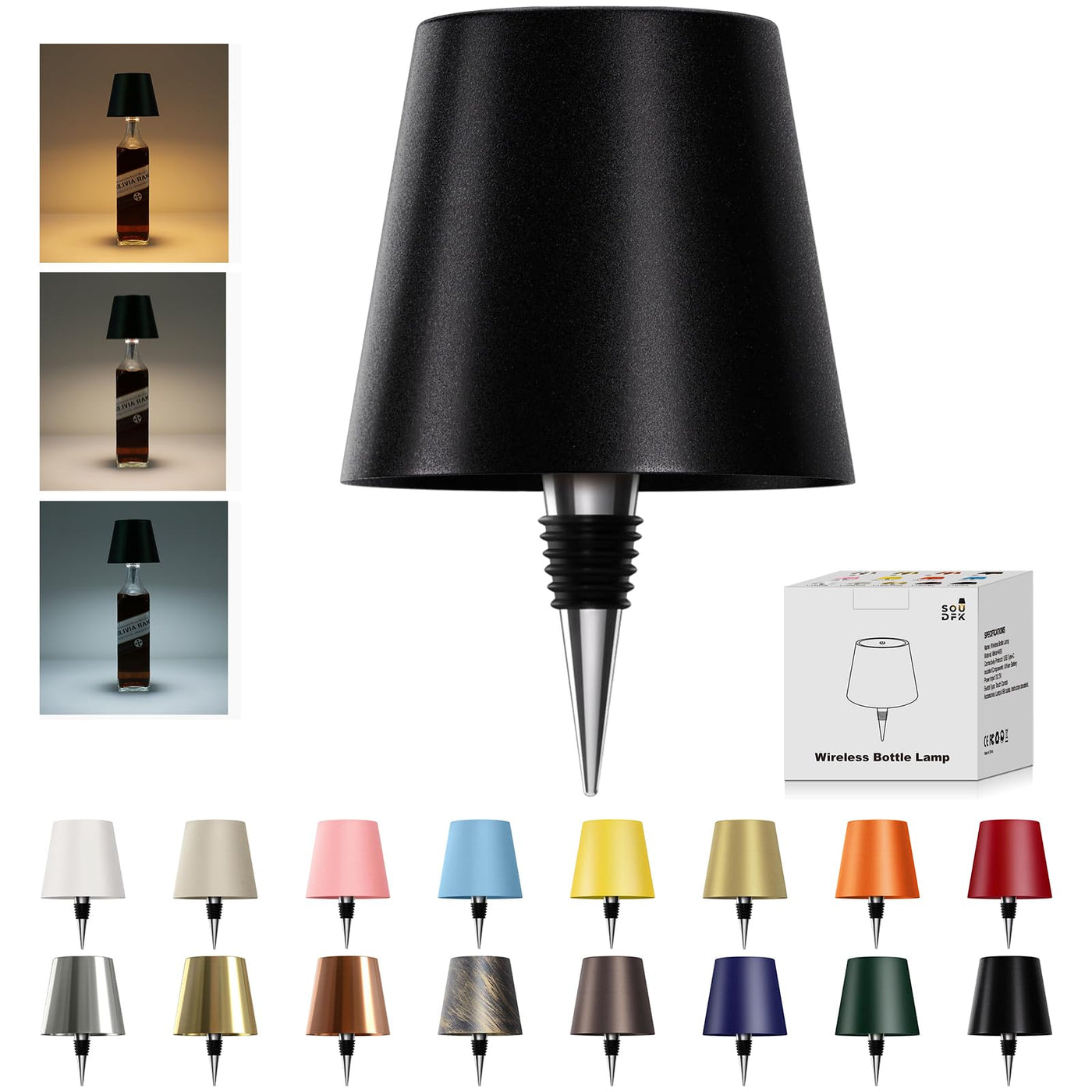 Q: What colors does the SOUDFK Wireless Bottle Lamp offer?A: The lamp is available in three colors, enabling you to choose the ideal hue that complements your space or mood.