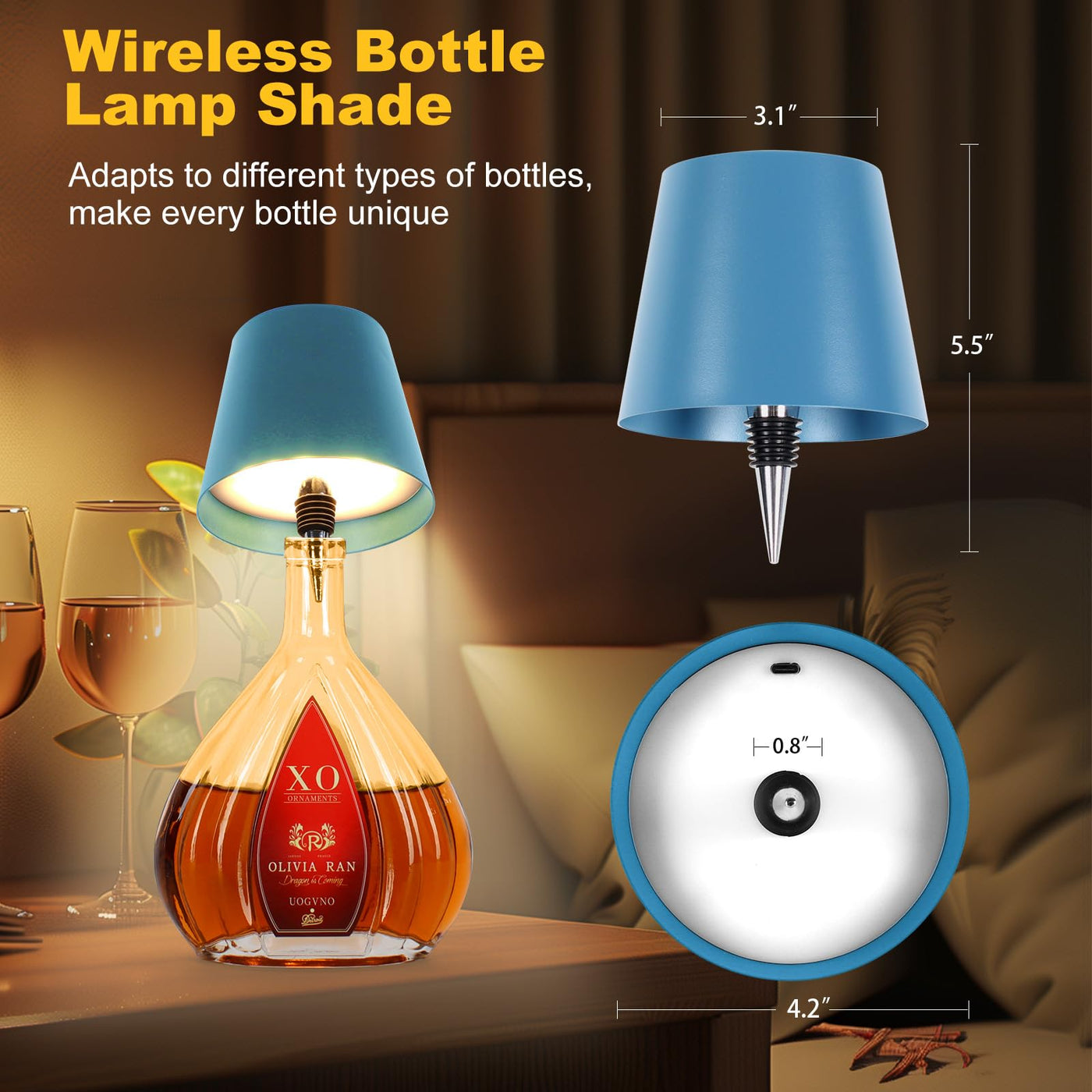 Q: Can I use the Wireless Bottle Lamp with any type of bottle?A: Yes, the Wireless Bottle Lamp is designed to work with various bottle types, including beer, wine, and whiskey bottles, allowing you to create a unique lamp that suits your style.
