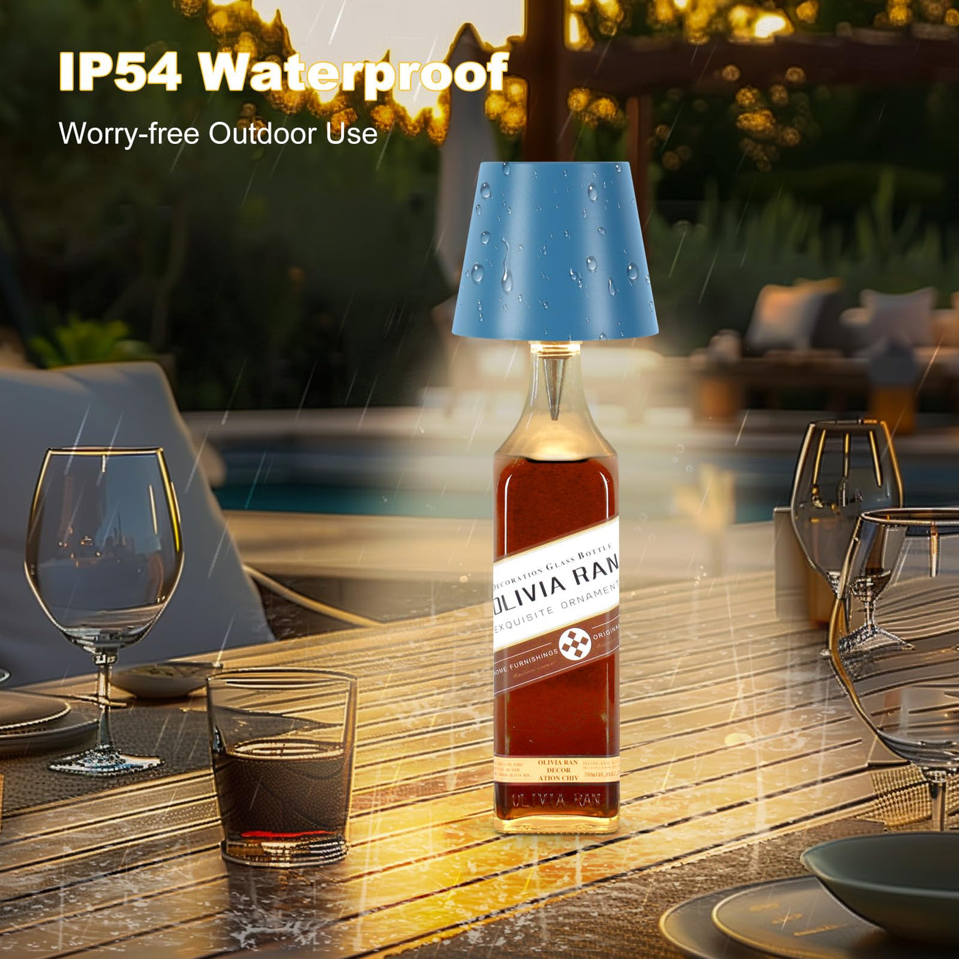 Q: Is the lamp suitable for outdoor use?A: Yes, the SOUDFK Wireless Bottle Lamp is portable and cordless, making it ideal for outdoor use such as in gardens, patios, or during camping, while still providing stylish lighting.
