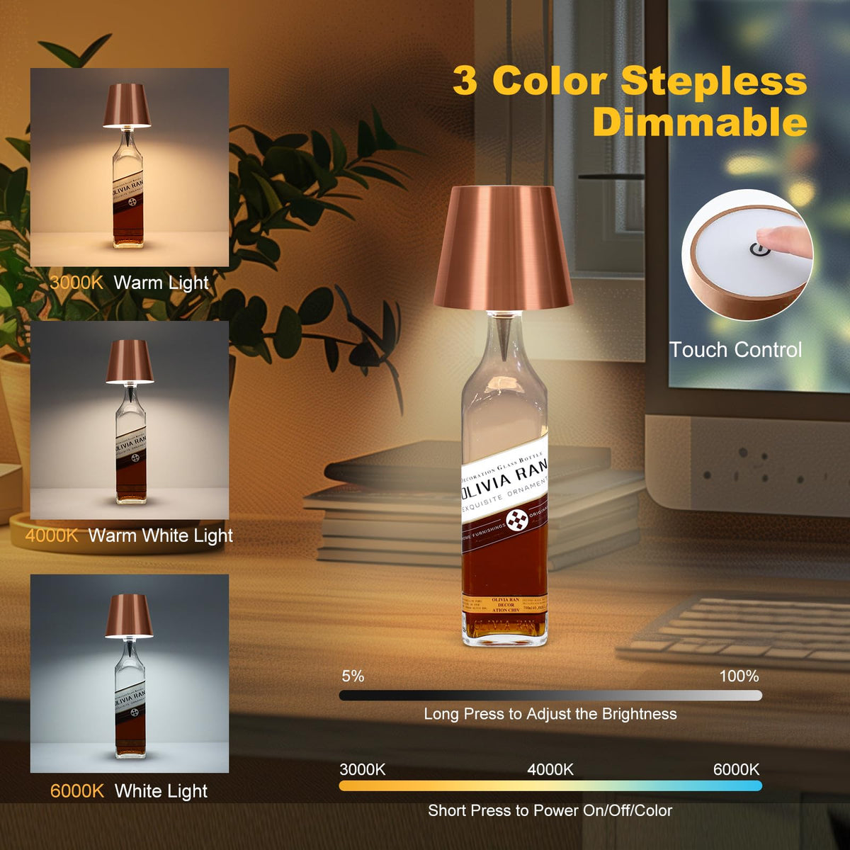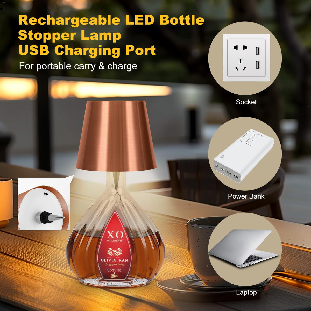 Soudfk Wireless Bottle Lamp, 2025 New 3 Color Rechargeable Wine Bottle Lights For Bars Restaurants (Champagne, 1Pc)