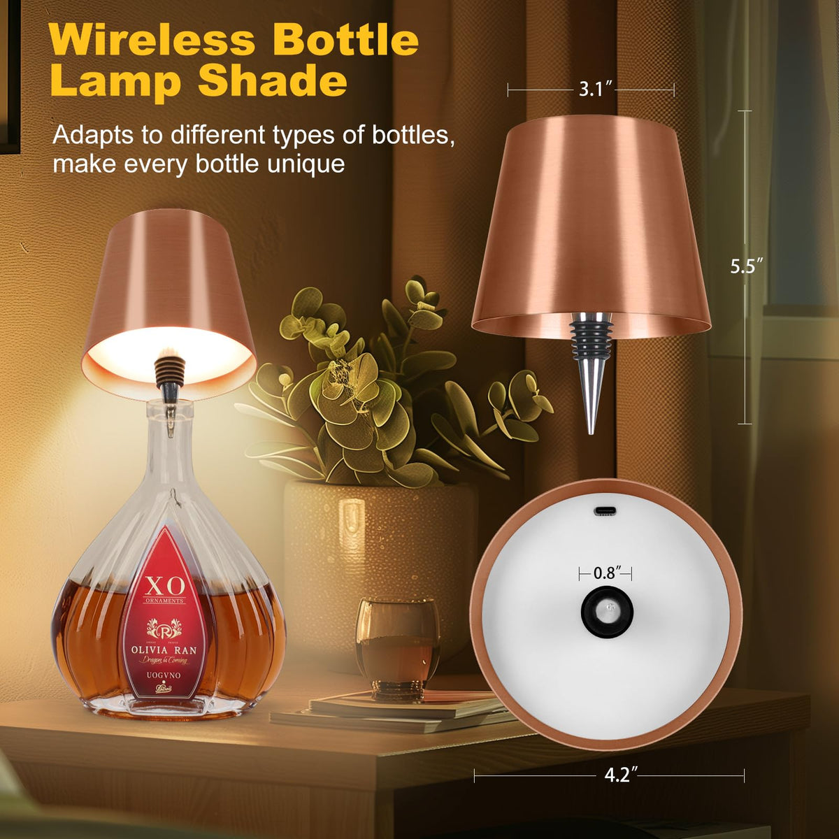 Q: What types of bottles can I use with the SOUDFK Wireless Bottle Lamp?A: The SOUDFK Wireless Bottle Lamp features a versatile conical lampshade design, allowing you to use various types of bottles as the base, including beer bottles, wine bottles, and whiskey bottles.
