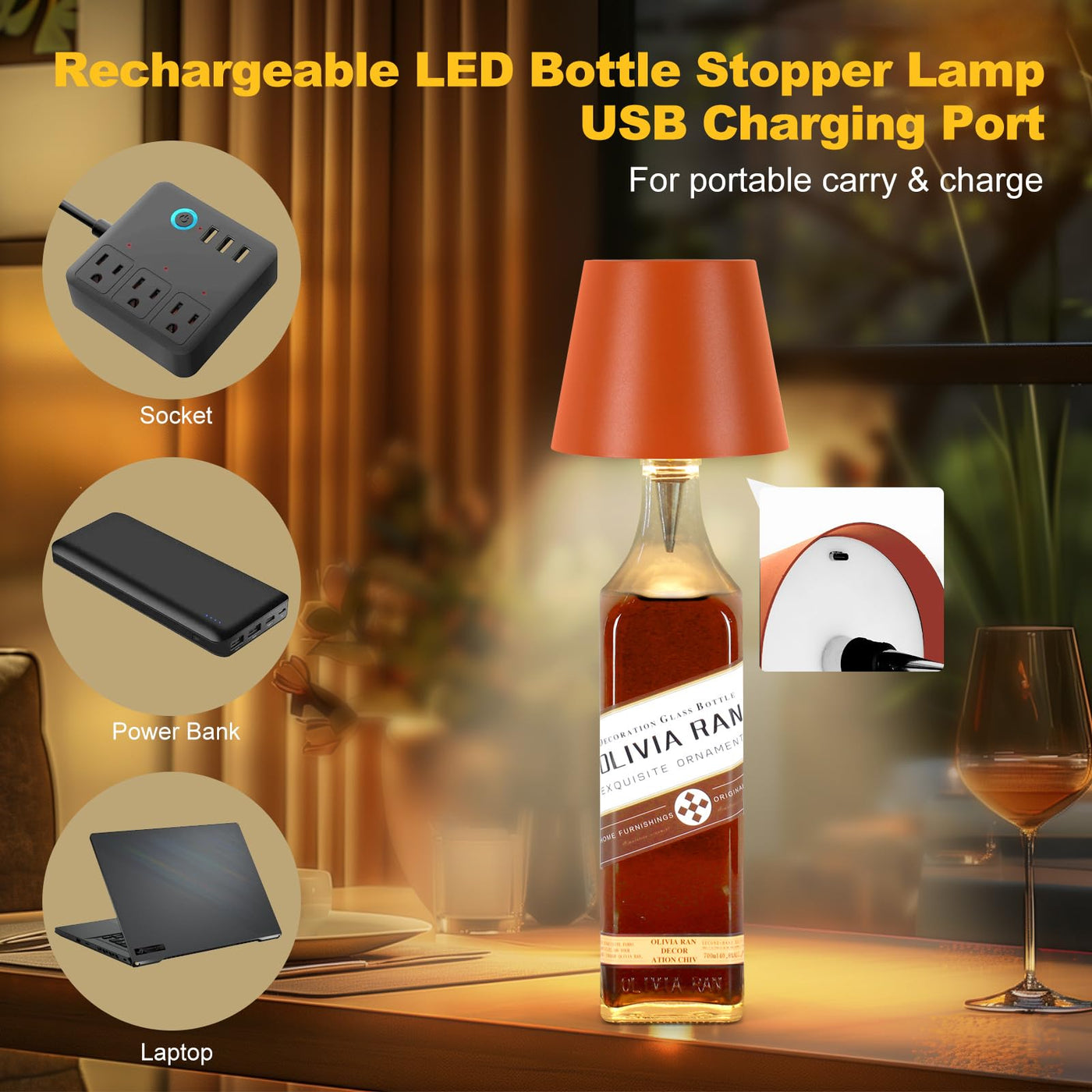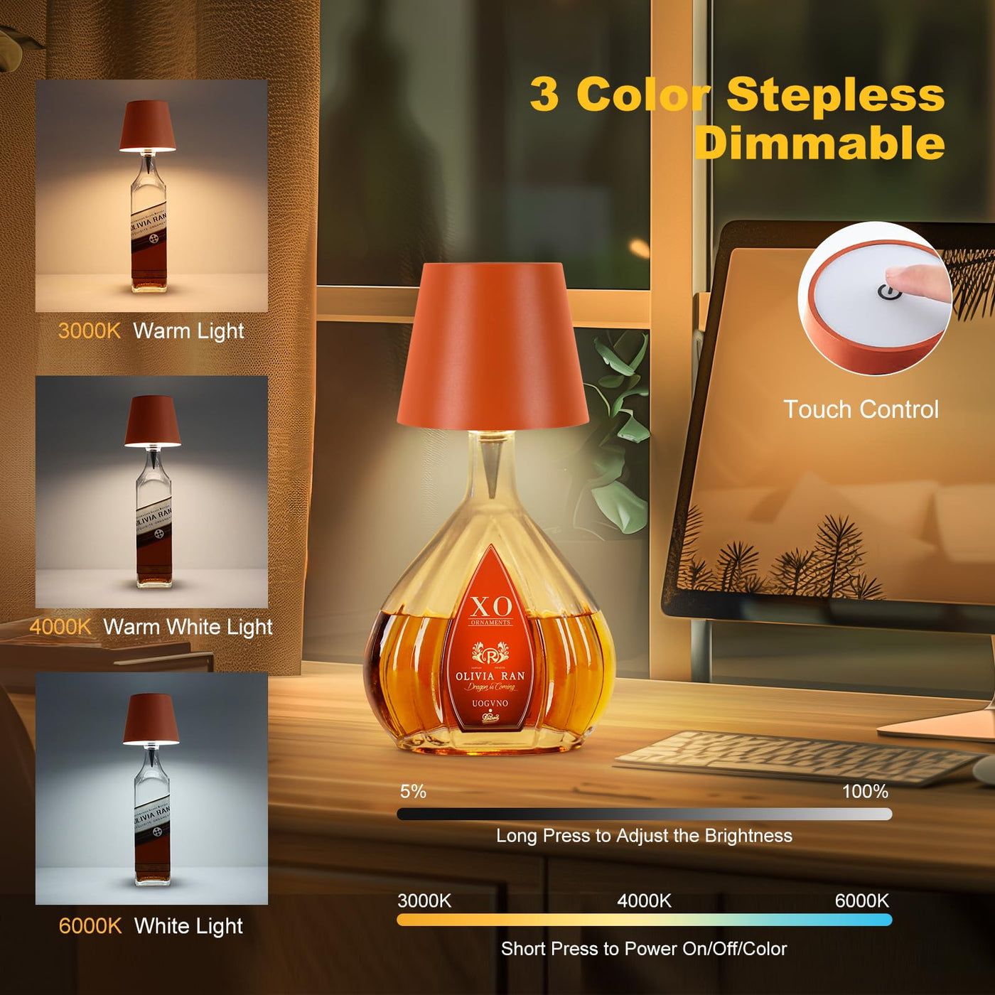 Soudfk Wireless Bottle Lamp, 2025 New 3 Color Rechargeable Wine Bottle Lights For Bars Restaurants (Orange, 1Pc)
