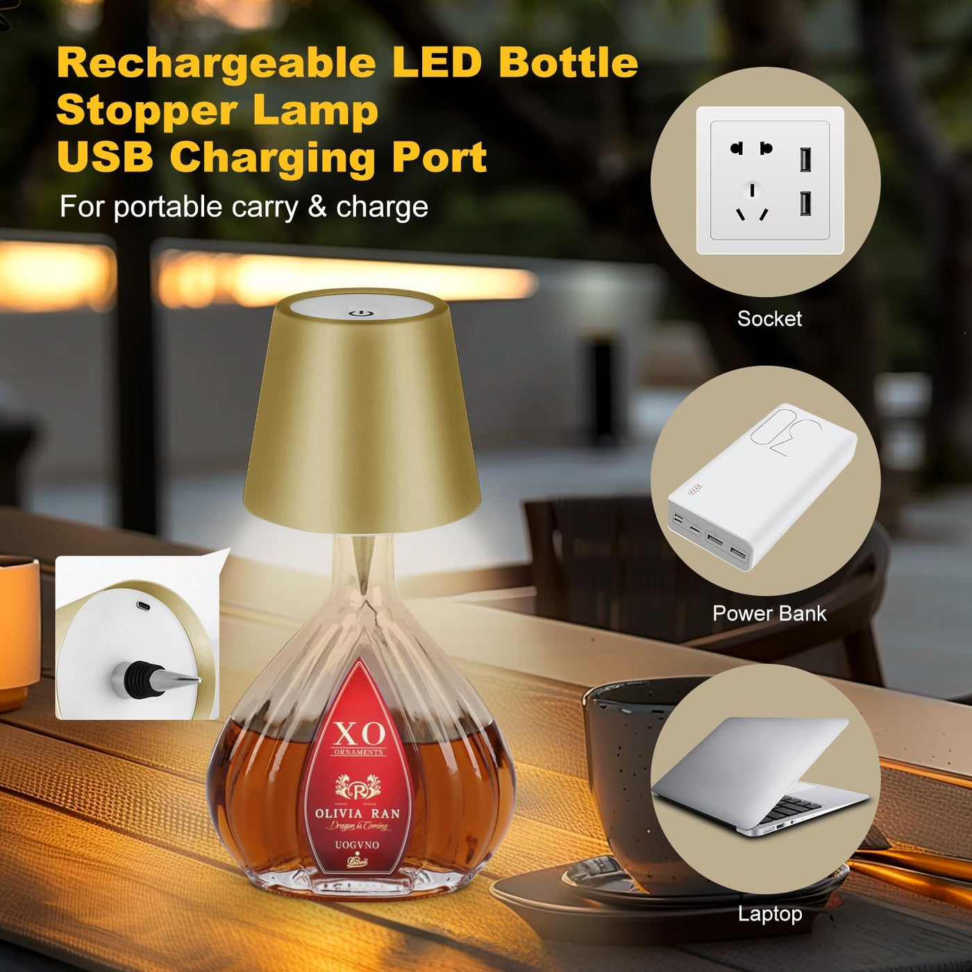 Soudfk Wireless Bottle Lamp, 2025 New 3 Color Rechargeable Wine Bottle Lights For Bars Restaurants (Placer Gold, 1Pc)