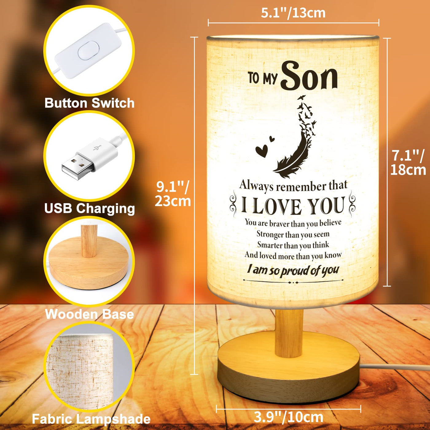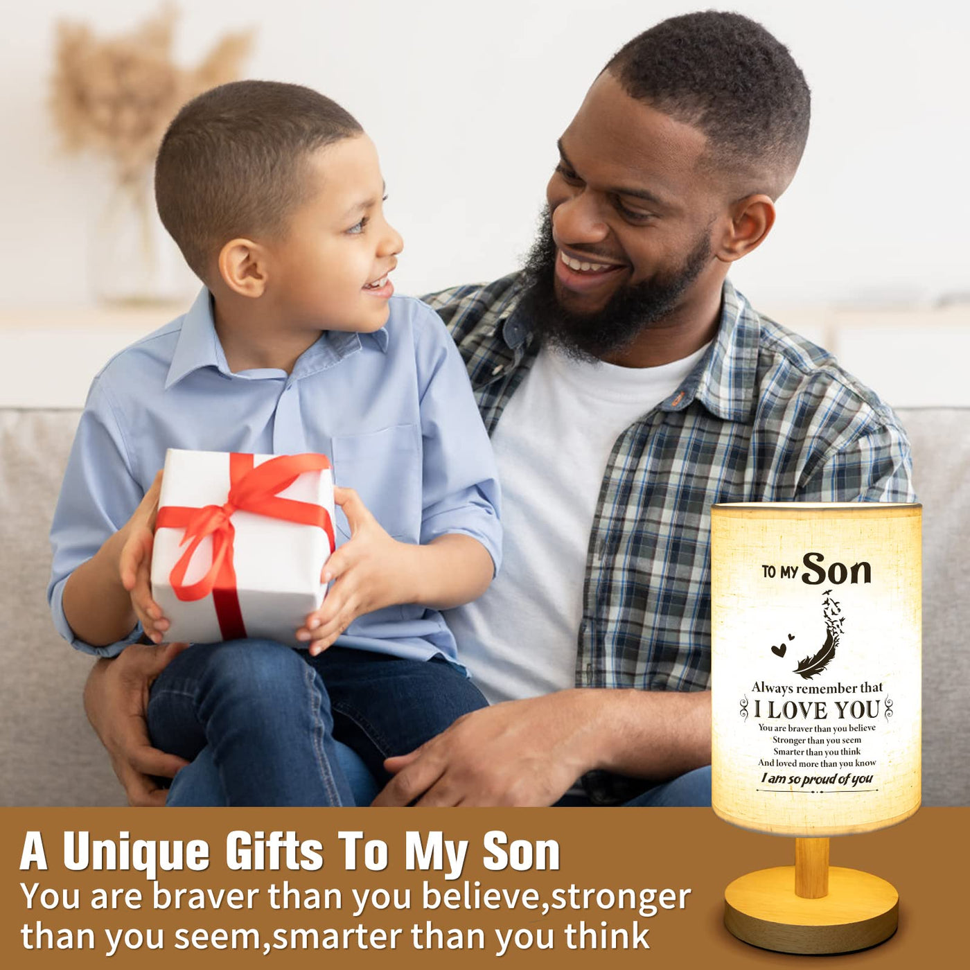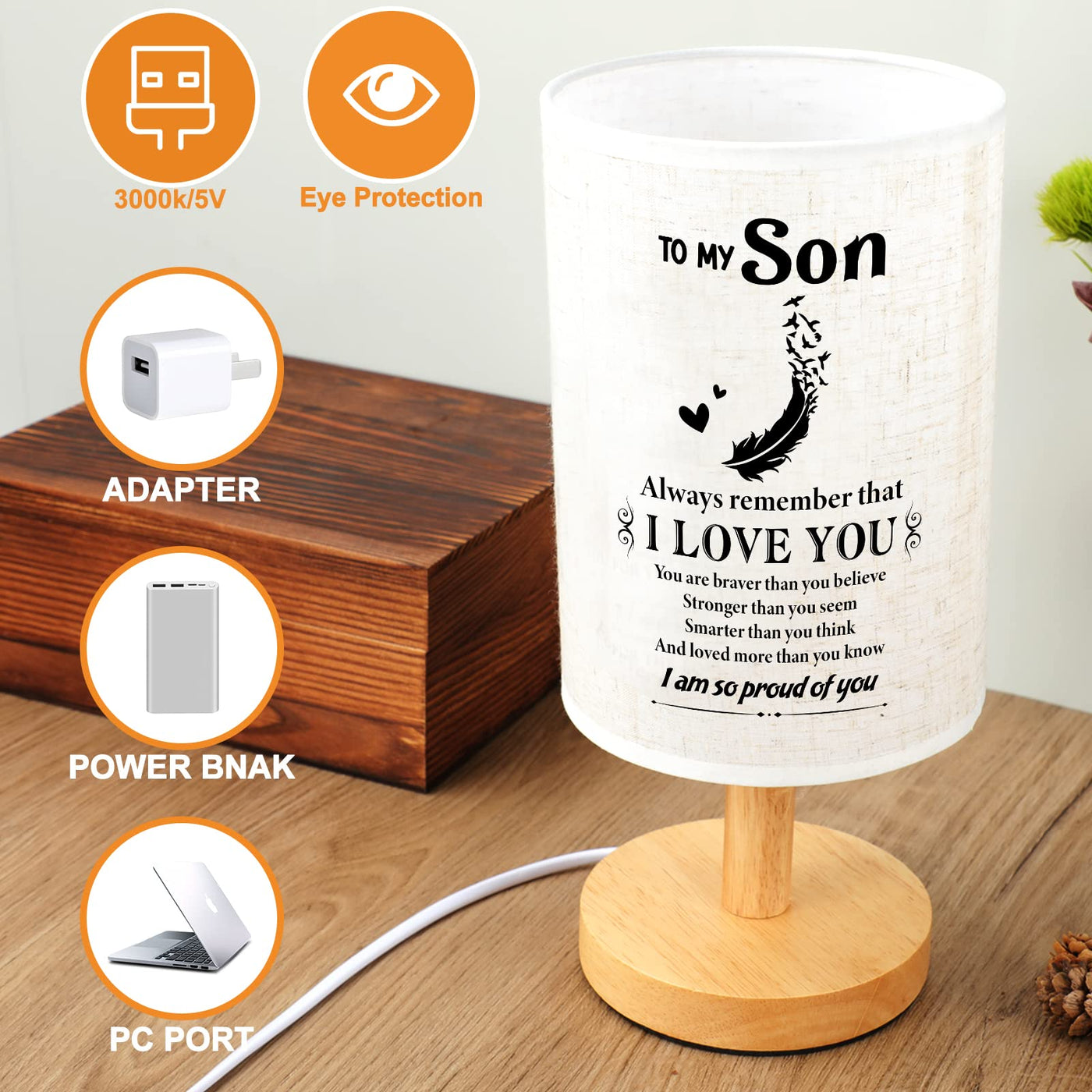 Souhoney Gifts For Son For Fathers Day From Mom Dad- Fabric Wooden Desk Lamp For Bedroom Living Room For Son Adult Graduation Se