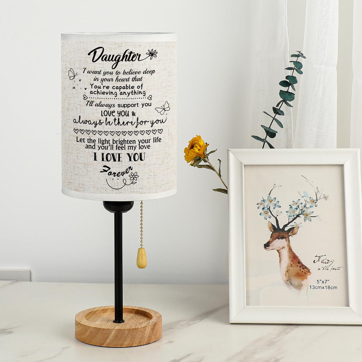 Souhoney Graduation Gifts For Daughter From Mom Dad- Fabric Wooden Bedside Lamp For Bedroom Living Room Mothers Day Gifts For Da