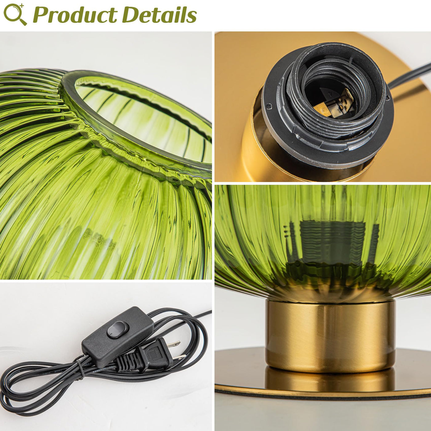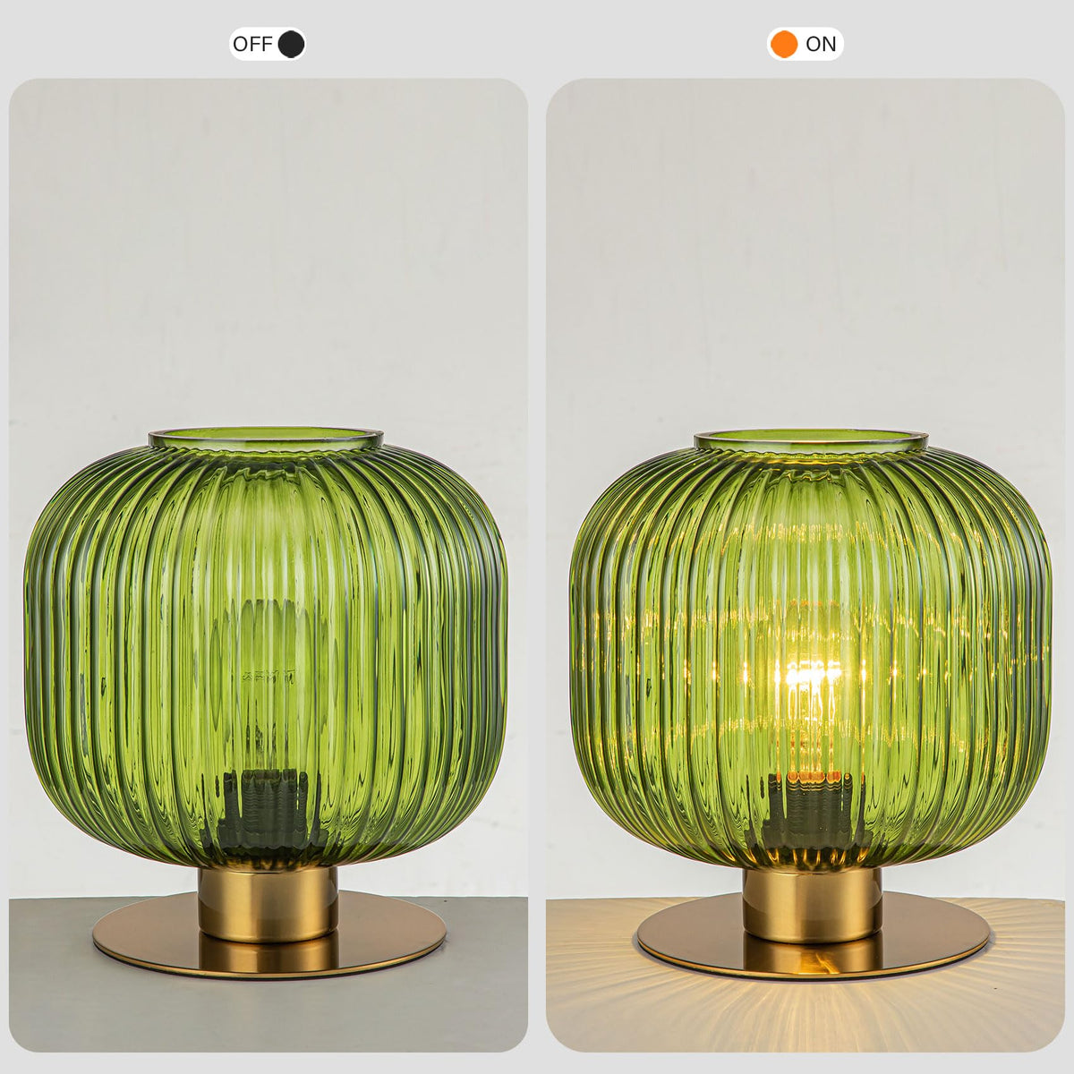 Soutas Small Table Lamp Elegant Green Glass Bedside Lamp With Ribbed Glass Shade Decorative End Table Lamp For Bedroom Tabletop Corner Shelf (Green)