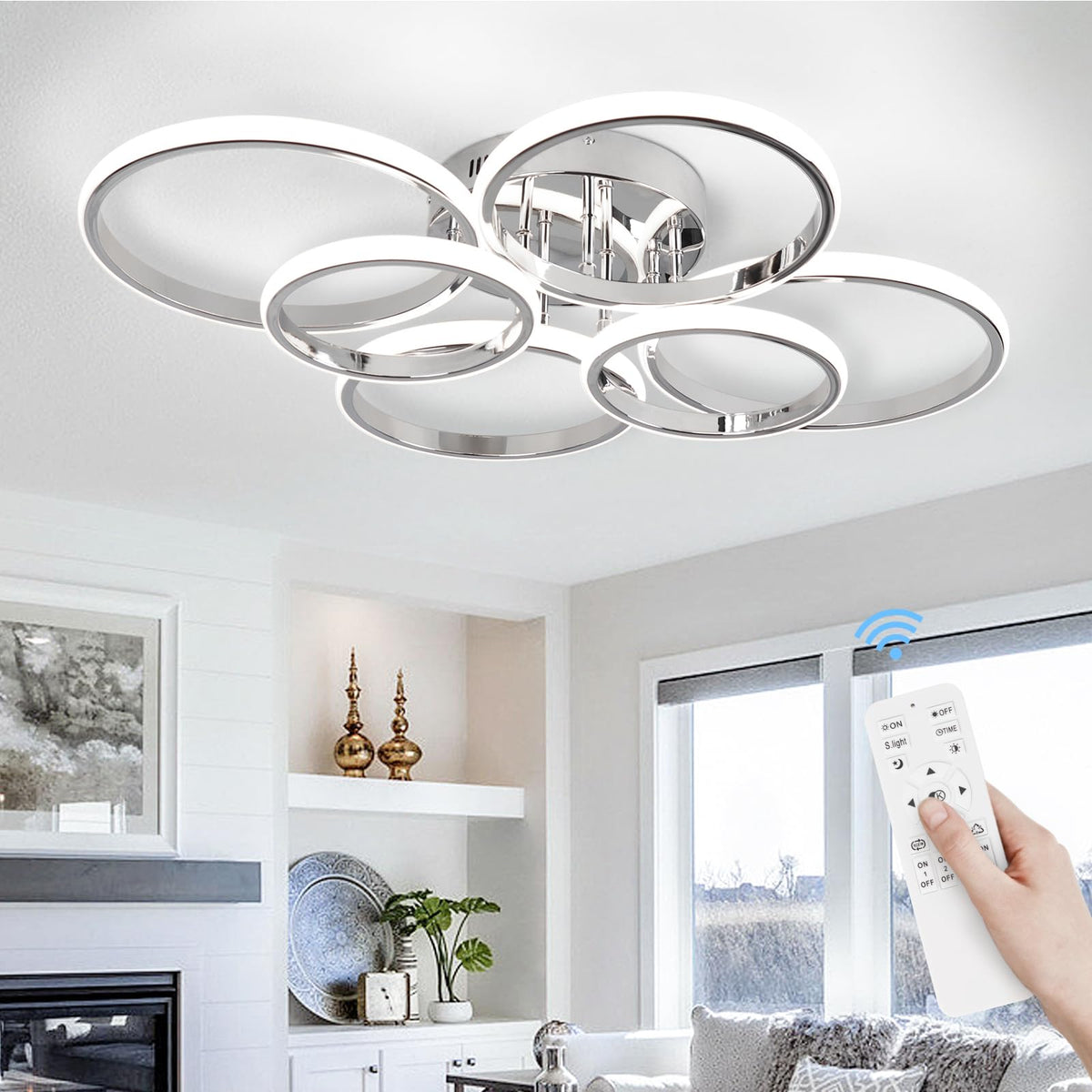 Sovinzert Modern Ceiling Lights, 6 Rings Dimmable Chrome Led Ceiling Light Fixtures With Remote Control, 60W Close To Ceiling Li