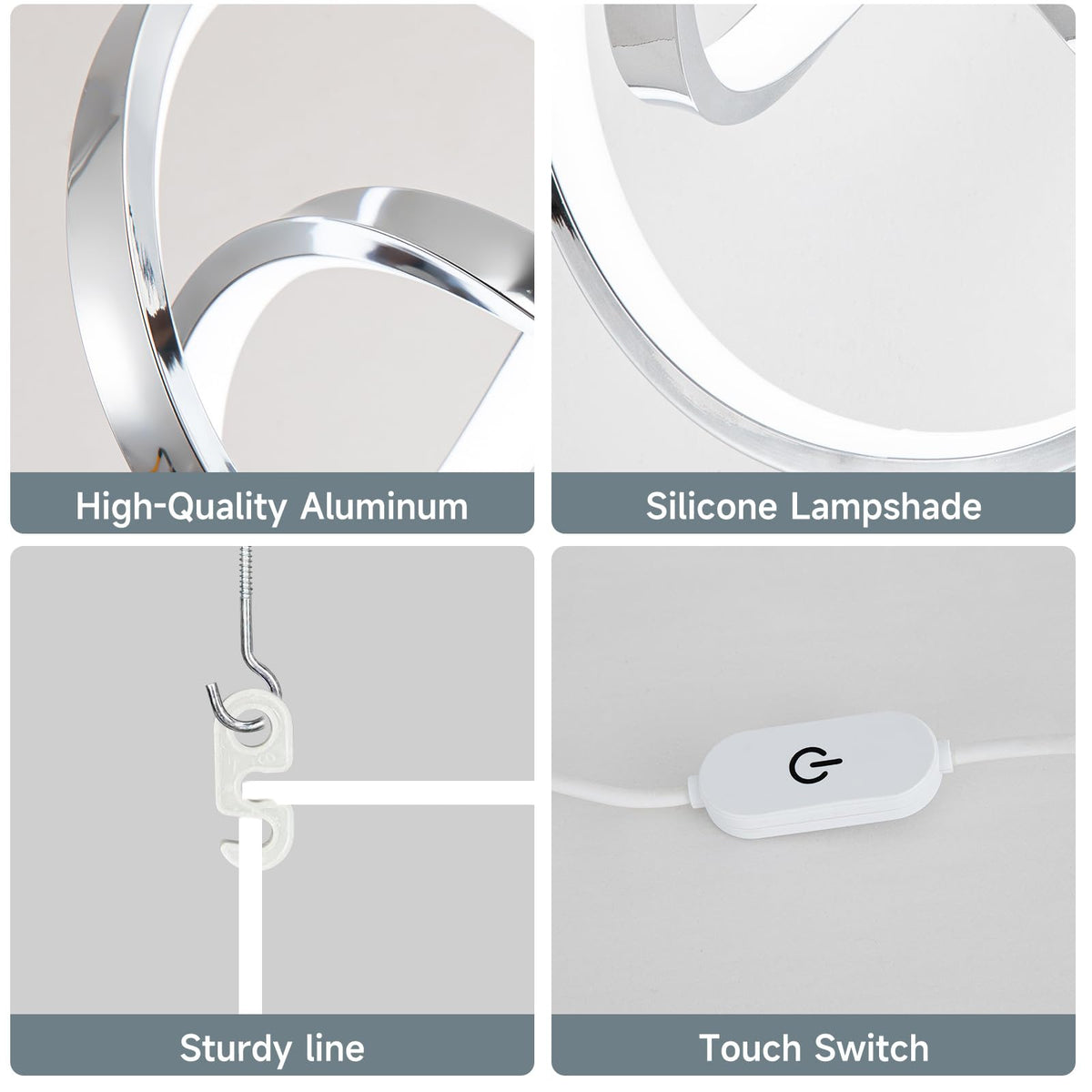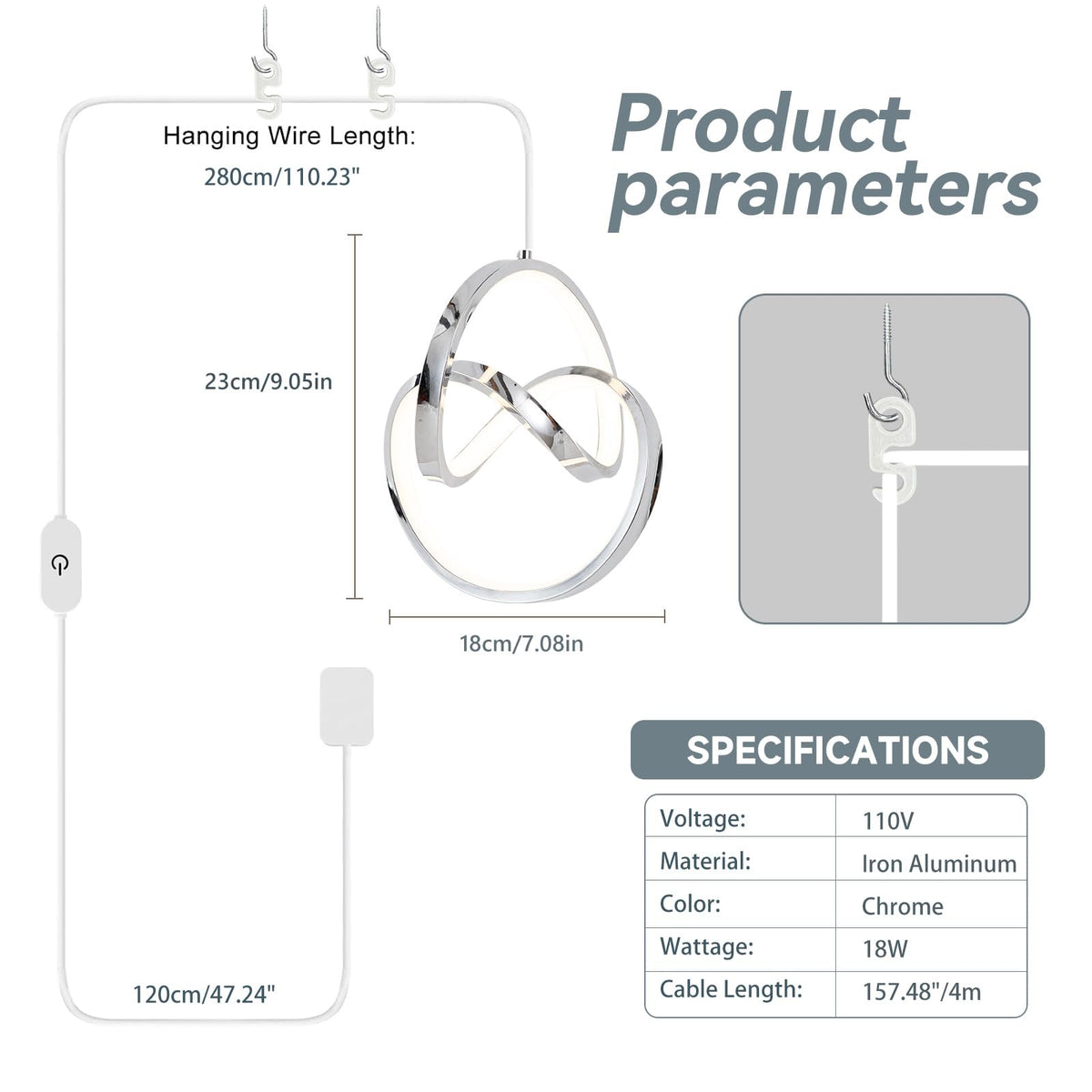 Unique Shape Design: The Pendant Lights Have A Figure 8 Shape In The Middle And An Oval Shape On The Outside. The Two Are Connected To Each Other And Have A Unique Modern Design Adding An Artistic Atmosphere To Your Space. The Modern Led Pendant Light Measures 9 Inches (L) X 7 Inches (W) X 7 Inches (H) Has A Power Of 24W And An Operating Voltage Of 110V