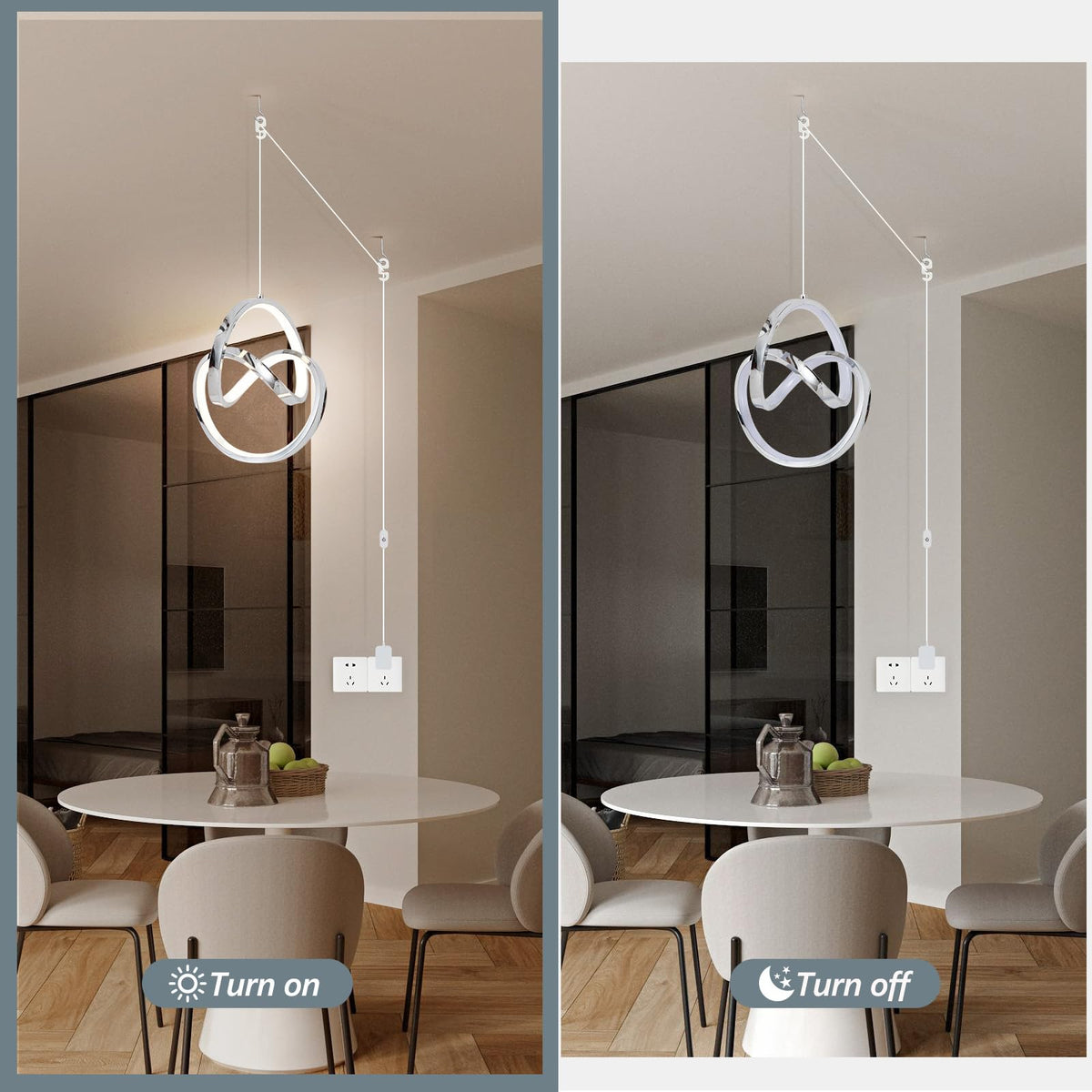 Sovinzert Modern Led Pendant Light Fixtures Pendant Lights Kitchen Island Lighting Adjustable Height Chrome Hanging Lamp For Dining Room Bedroom Living Room (1 Pack)