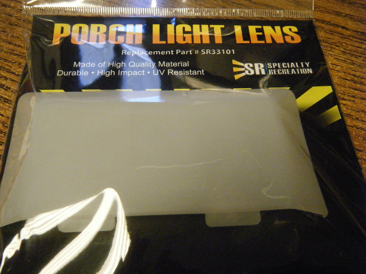 Q: Is the SR SR33101 lens compatible with all RV porch lights?A: The SR SR33101 lens is designed to replace standard RV porch lights, but it's important to check your existing lens dimensions and shape to ensure compatibility.