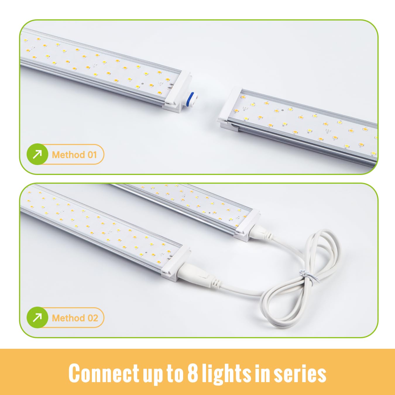 Q: How many SpeePlant grow lights can I link together?A: You can link up to 8 SpeePlant LED Grow Lights in a series using the included 40-inch connecting cable or the lights' own connectors, allowing for flexible installation in various setups.