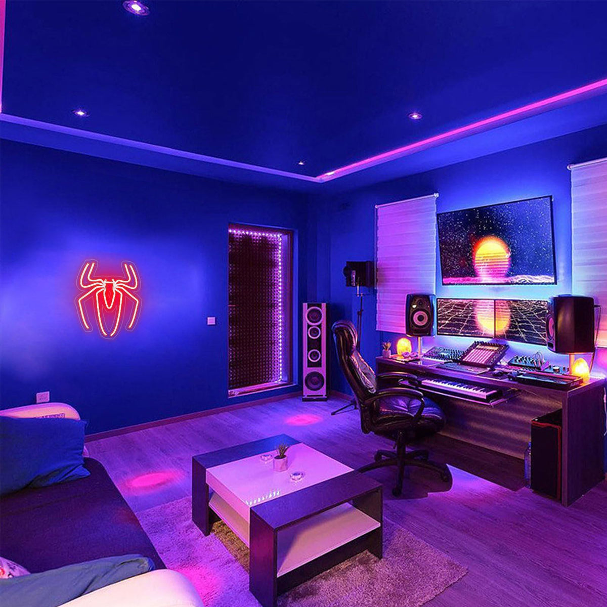 Q: Is the Spider neon sign safe for children?A: Yes, the Spider neon sign is made from environmentally friendly LED light strips, which are low in energy consumption and do not get hot, making it safe for children's rooms.