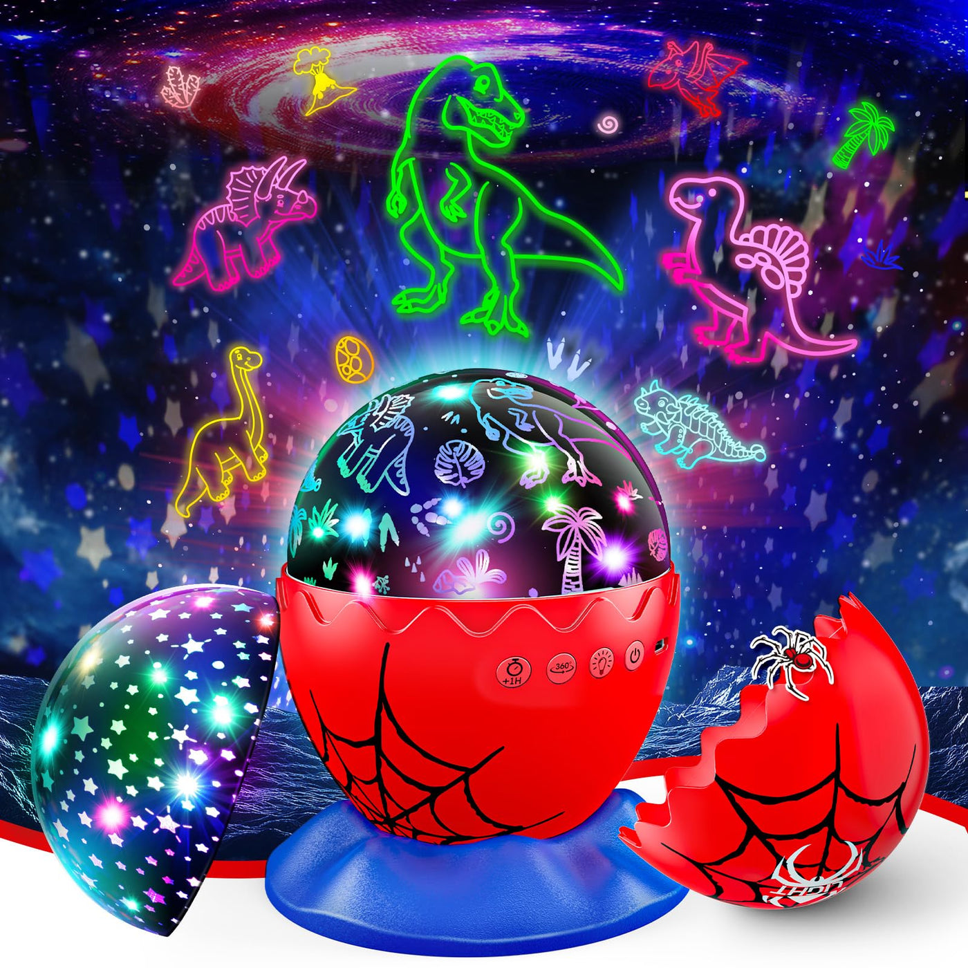 Spider Egg Night Light Projector For Kids: Night Lights Toys For 3-5 6 7 8 9 10 11 12 Year Old Boys, 2-In-1 Dinosaur & Star Proj