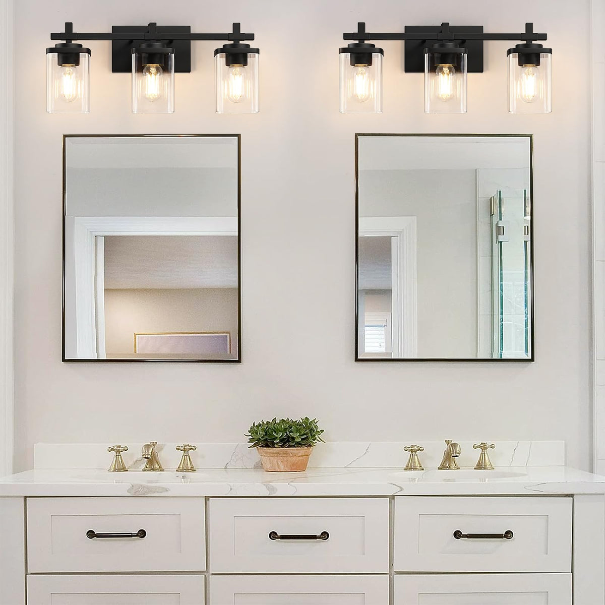 Spiglamm 3-Lights Bathroom Vanity Light Fixtures, Modern Black Vanity Lights Over Mirror With Clear Glass Shade For Bathroom, Wa
