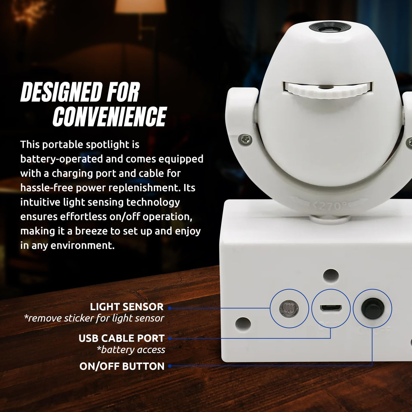 - **Portable and Versatile**: Battery-operated with an included mini USB port for charging, this projector is perfect for indoor and outdoor use, whether it's your fan cave, dorm room, or backyard gatherings.