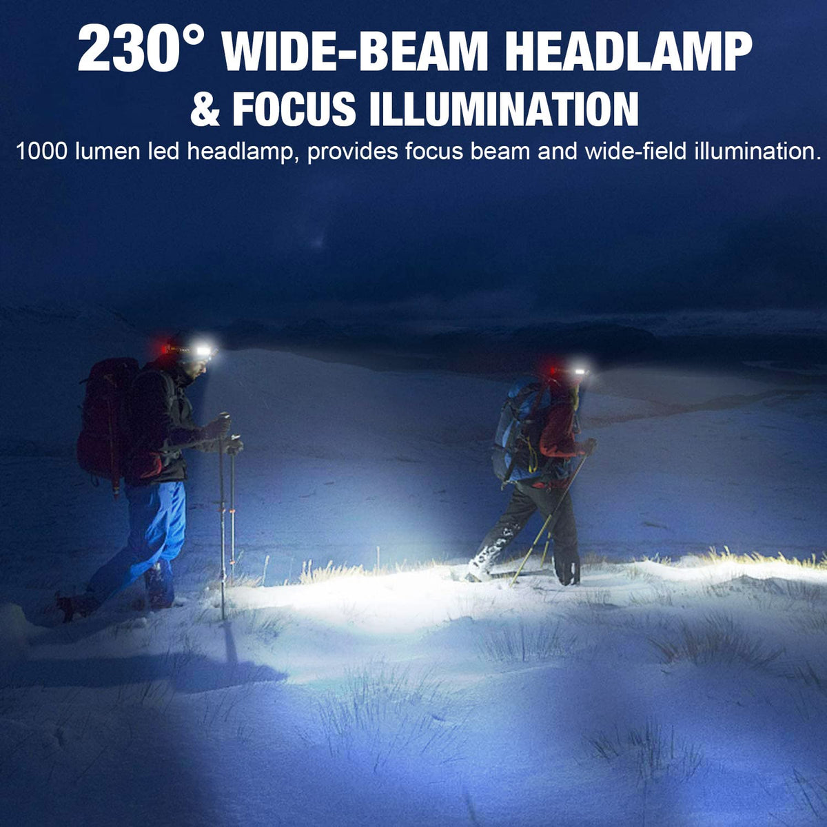 Spriak LED Headlamp, 1000lumens 230 Widebeam Headlight, USB Rechargeable HeadLamp with Red Taillight, Lightweight Waterproof Hea