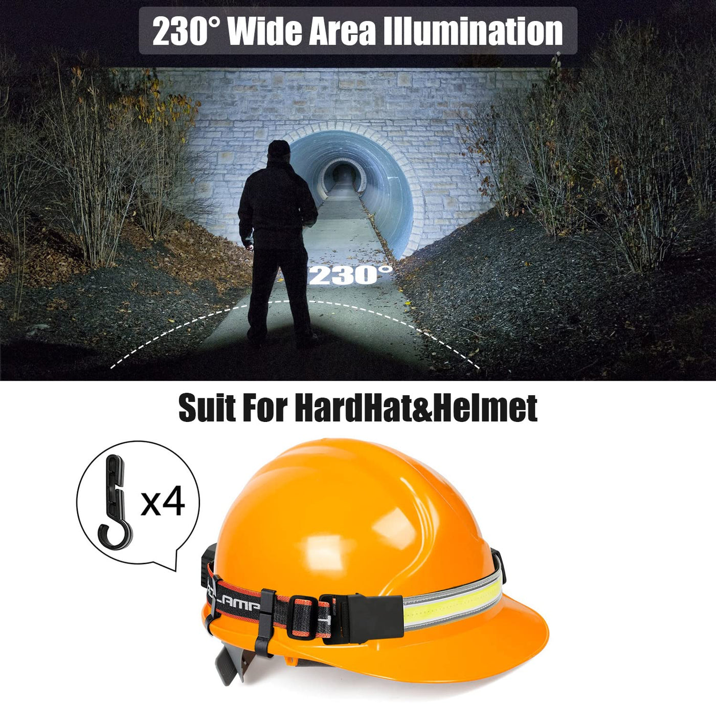 Why choose Spriak Wide-Beam Rechargeable Headlamp? 1. 1000LM super bright led headlamp ---with 1000lumen high lumen, you can see everything you need to see. 2. 230 Broadbeam Headlamp Flashlight---230 is the best light angle fit to human eyes, the light will light up all of your front vision, so you dont have to move headlight to illuminate the desired area, you can see all of your surrandings. 3. USB Rechargeable HeadLamp --- The headlamp flashlight is built-in rechargeable battery, 3 hours fast charge. Compare with traditional headlight with dry batteries, you dont have to purchase battery multiple times. Save Your Money!Very Economic. 4. Headlamp with Red Taillight --- Led headlamp for safe, headlights and taillights work together, its better to indicate your position, ensuring other people and animals can see your presence, attract attention and release warning signals, avoid dangerous in time. 5. Lightweight headlamp& Waterproof Headlamp --- The led head lamp is only 3.7 ounce(weight with battery), comfor to wear on head and hard hat. Its waterproof, can be used in rain. 6. Comfortable Non-Slip Band --- The elastic band is breathable and adjustable, allows you to wear it comfortably. Its non-slip, the non-slip band wont slip off even if you sweat or get wet in rain. Features of LED Headlamp Rechargeable Brightness: 1000lumens Battery Type: 1200mAh Lithium-ion battery Modes: High, Low, Strobe(white and red light work together) Light Source: Cob LED Headlight, LED Red Taillight Weight: 105g/3.7ounce(with battery) Package Included: 1pcs Rechargeable Headlamp 1pcs Charging Cable 4pcs Hardhat Clip 1pcs User Manual